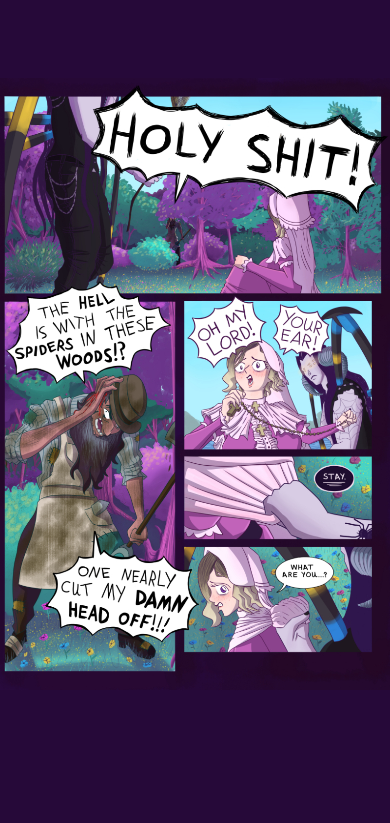 Esther, a nun with holy powers, lives trapped within convent walls, waiting to be sacrificed by the Pope, until she meets a Spider Demon, Gurteerath. Gurteerath helps Esther escape, and they set out on a journey to kill the Pope. However, Esther's holy powers stand in their way...
