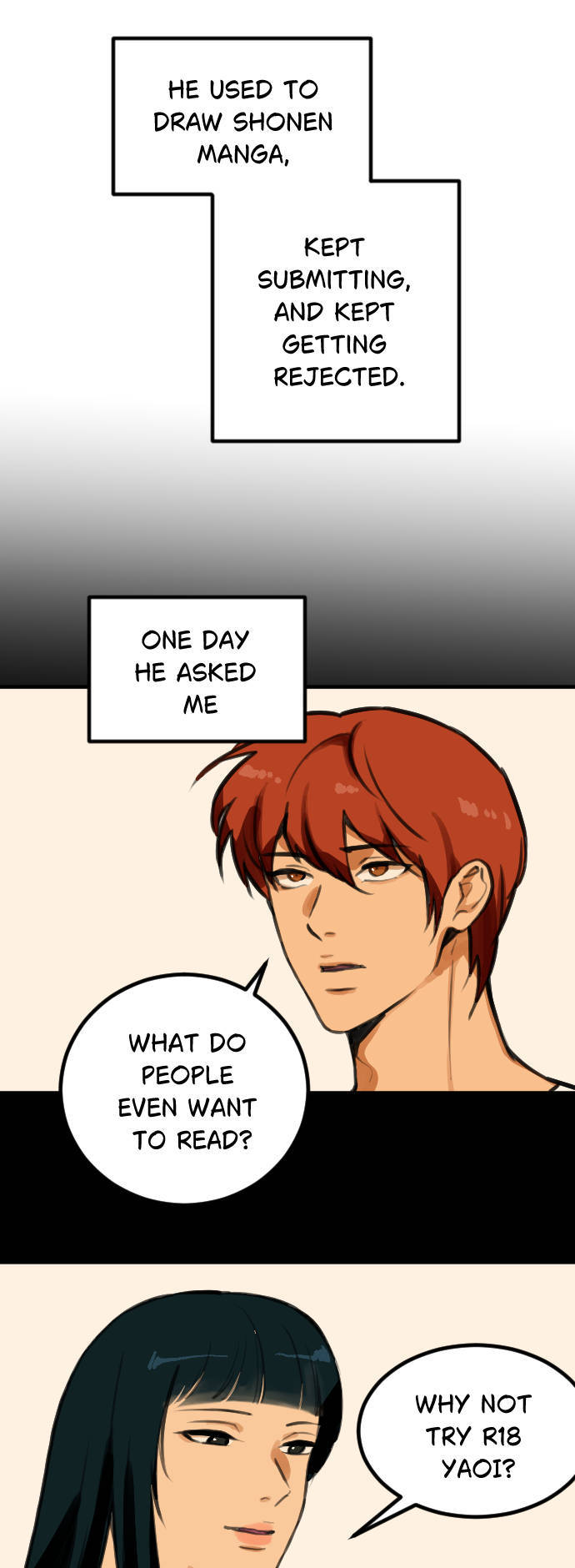 Yanliang is a virgin webcomic artist. He draws horny YAOI comics for cash—his crazy teacher TAO said it’s the only way to survive. He’s got goals: Buy a car. Buy a house. Fall in love. Lose his virginity!! One day, while trying to level up his spicy art, he meets Jingyuan—a chill, artsy creator...