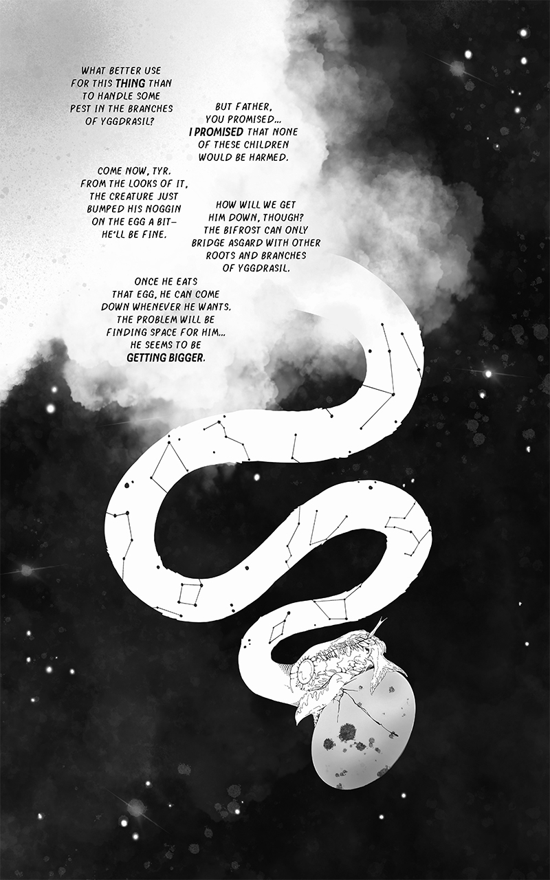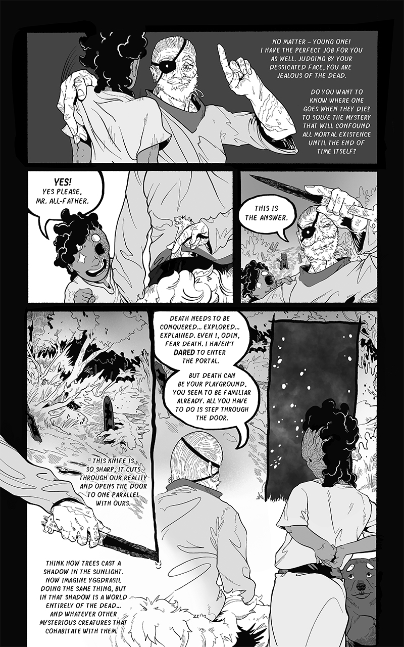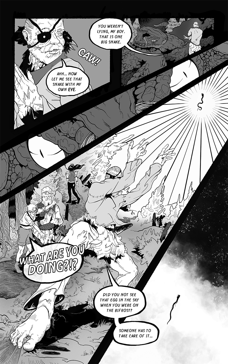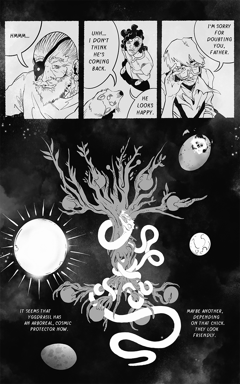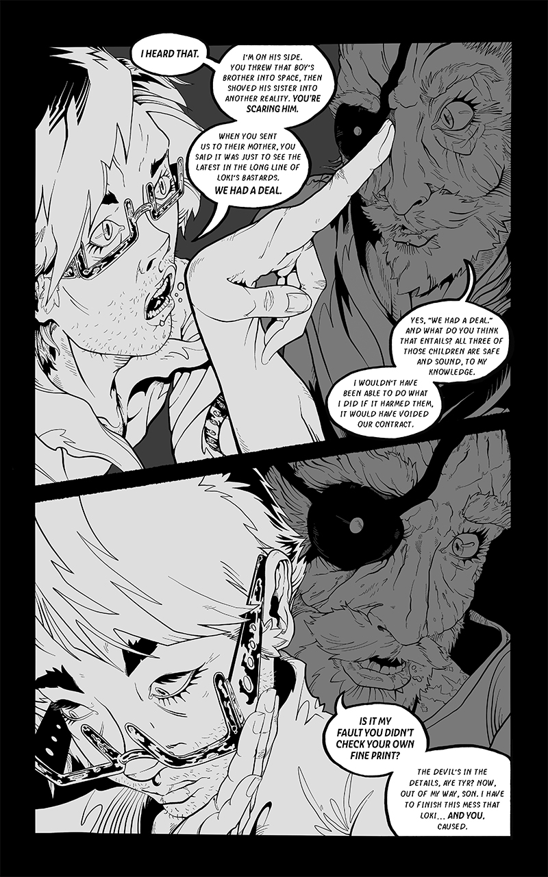 An ongoing webcomic chronicling Fenrir's journey across a barren, post-Ragnarok landscape. Hunted by the Norse Gods who desire vengeance he seeks to find his place in a future that is no longer pre-ordained.