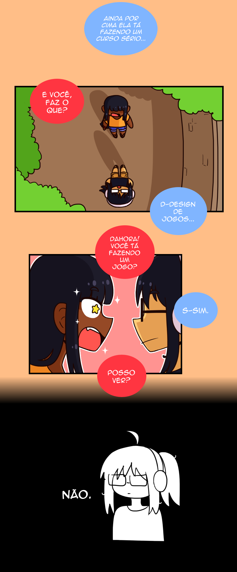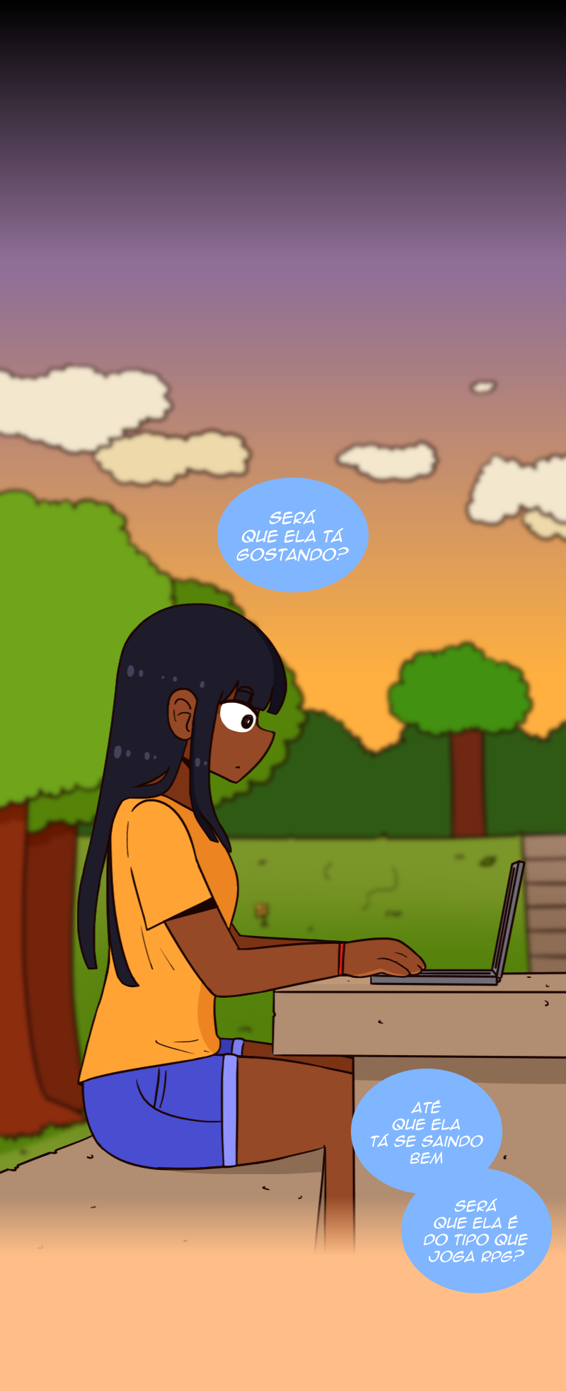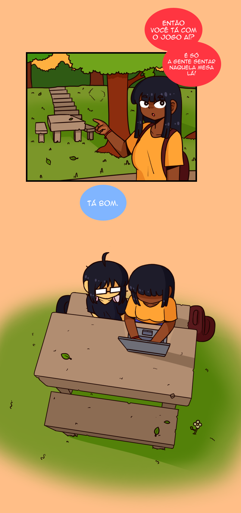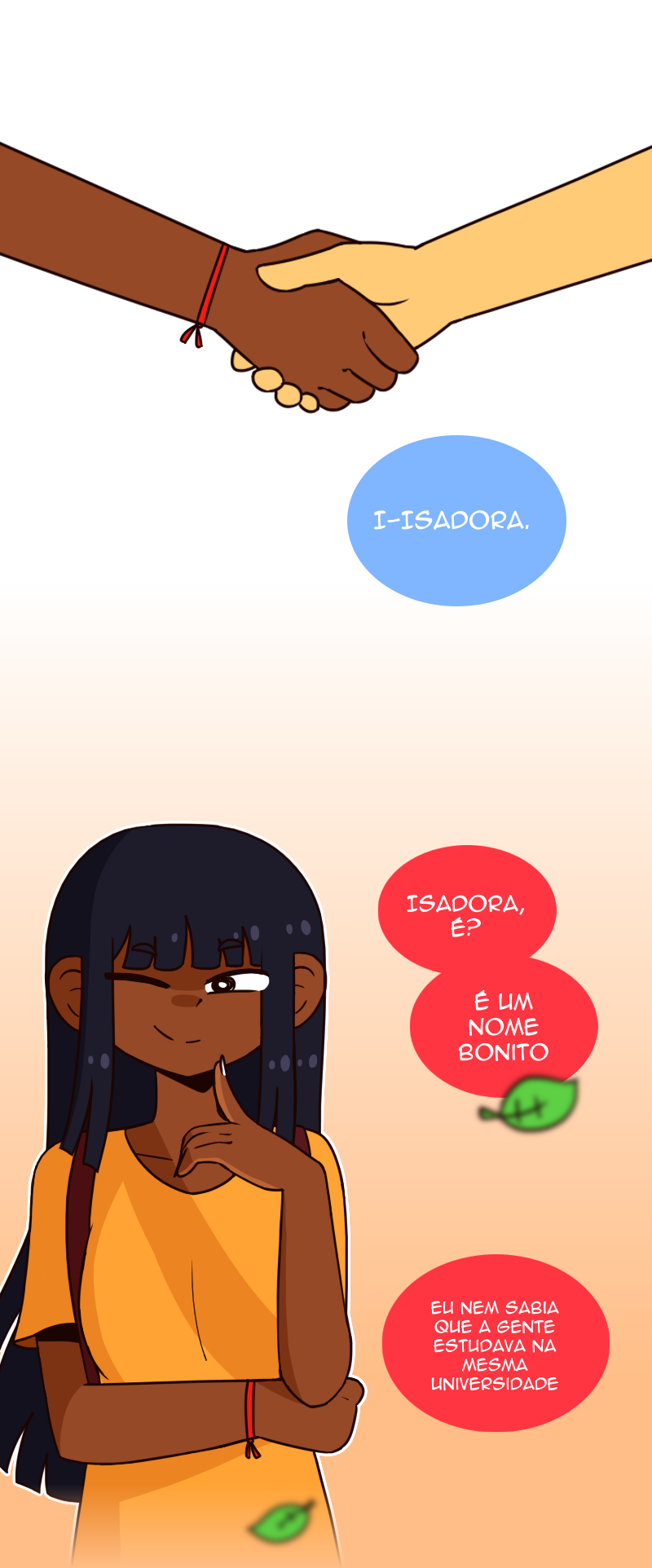 A Isadora é uma estudante de design de jogo que está criando um RPG no seu tempo livre. Um dia, ela se constrange na frente da Yasmin e tenta o máximo possível evitar se deparar com ela de novo, até que ela descobre que as duas estudam na mesma universidade!