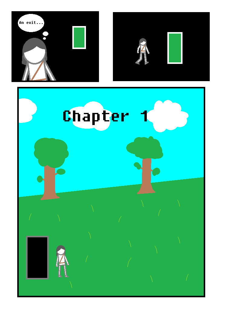 Second page, introduces the first chapter. Didn't put too much effort into this, but then again, it's only three panels, so it's to be expected.