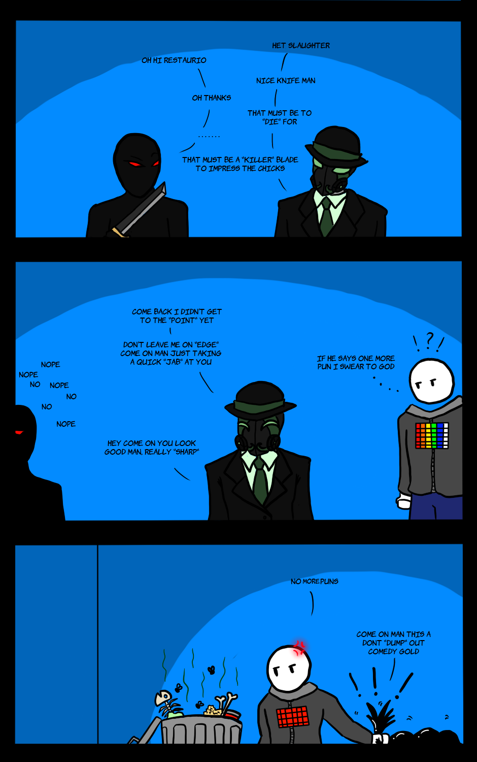 So many killing and knife puns that are so bad https://tapastic.com/IAm24Bit