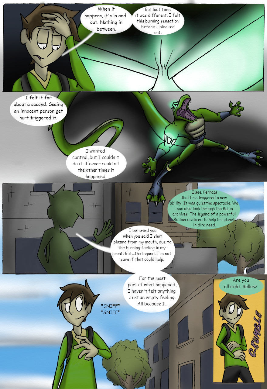 Rallia, a planet home to a lizard race known as Rallians is under attack by the Zeneck. A young soldier named Rellos is one of many Rallains that inherit the Plasma Gene. These Rallians tend to stay hidden but are captured be the Zeneck. Seen as their last hope, Rellos was forced to leave his home to better understand his powers. Now lightyears away on Earth, Rellos lives among humans and protects them from treats sent by The New Rallian Empire. Despite all odds, no matter what it takes, Rellos will find a way to get back home.