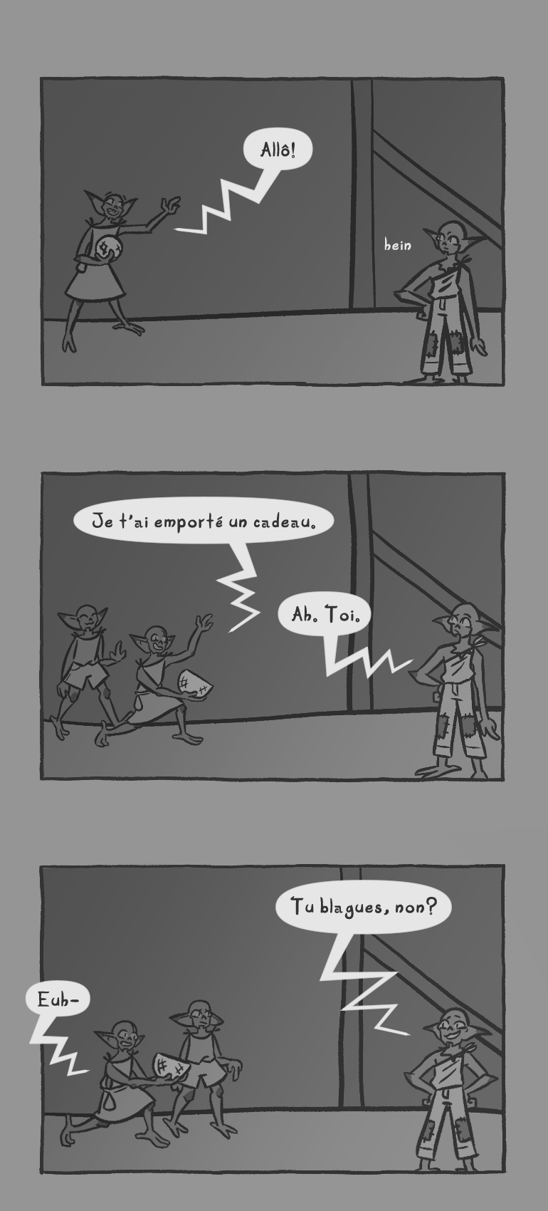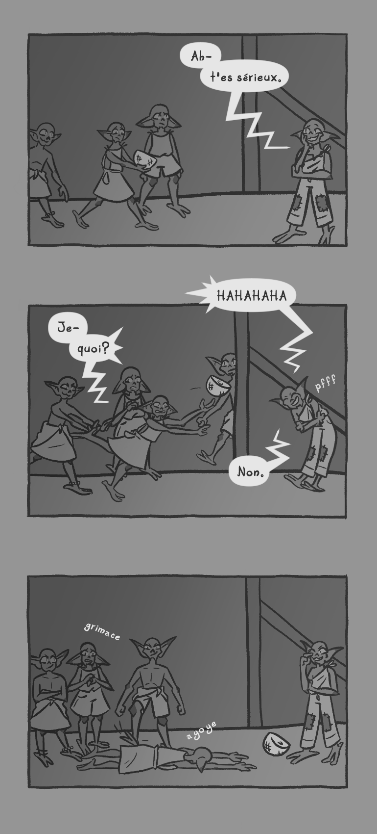 C'était pas exactement idéal, son affaire Pour avoir de l'avance ou lire la version originale anglaise, regarde sur le siteweb : https://freeholds.ca/ Sur le ko-fi : https://ko-fi.com/freeholds Ou sur tapas : https://tapas.io/series/Goblin-Jam/info Retrouve nous sur discord : discord.gg/UGyy2uD6EN