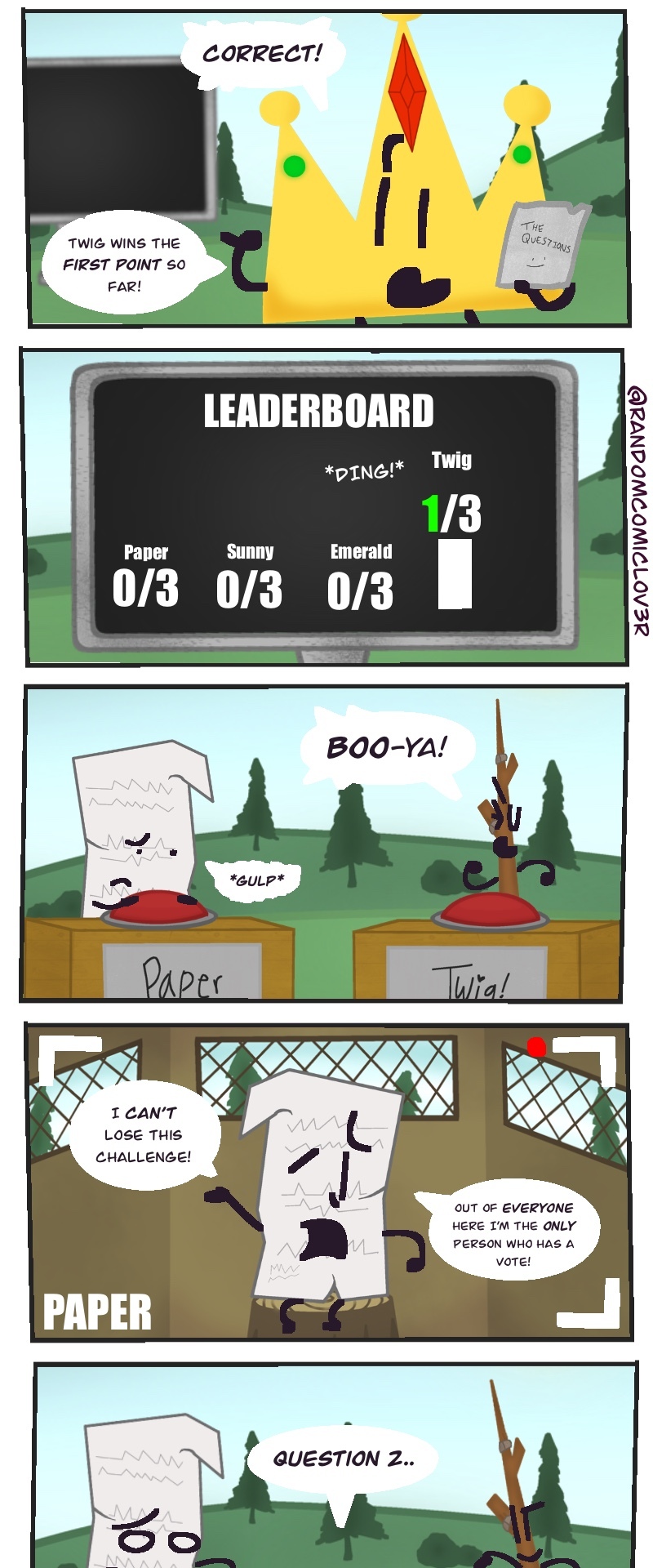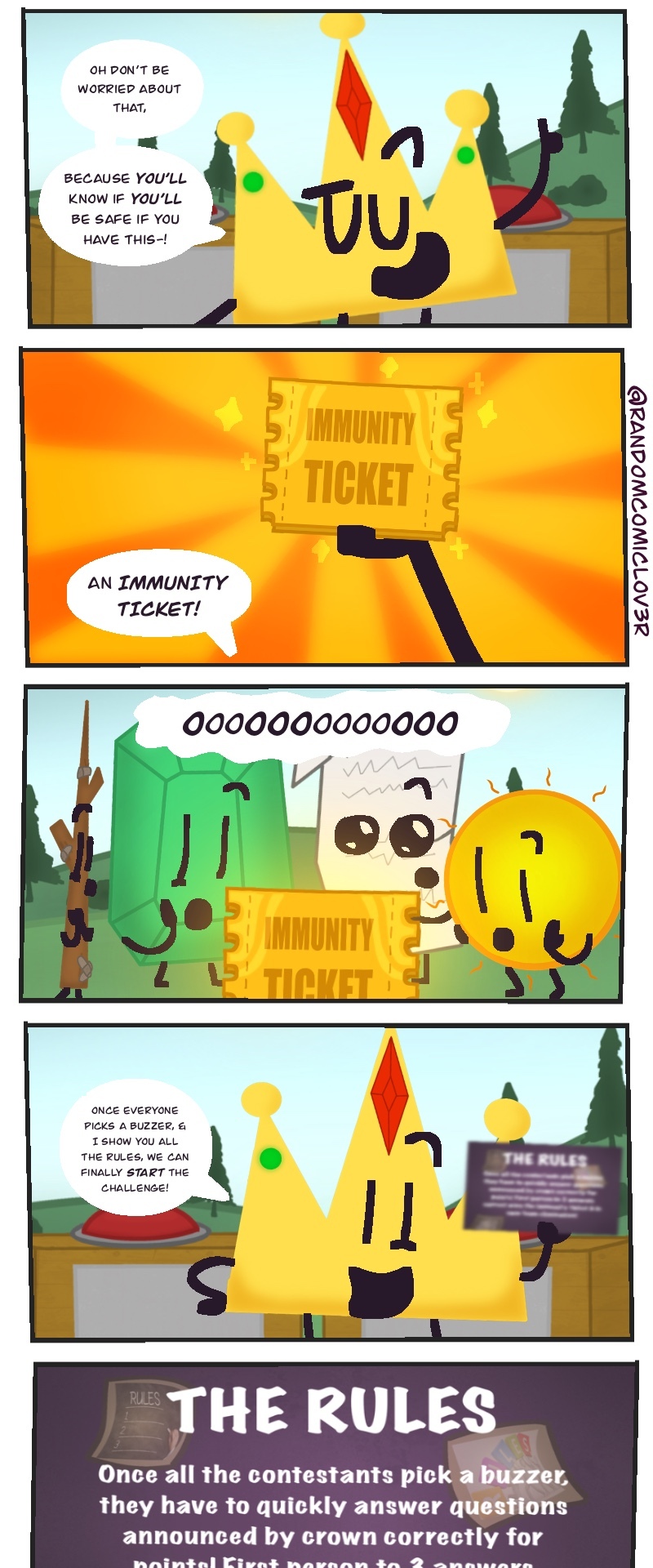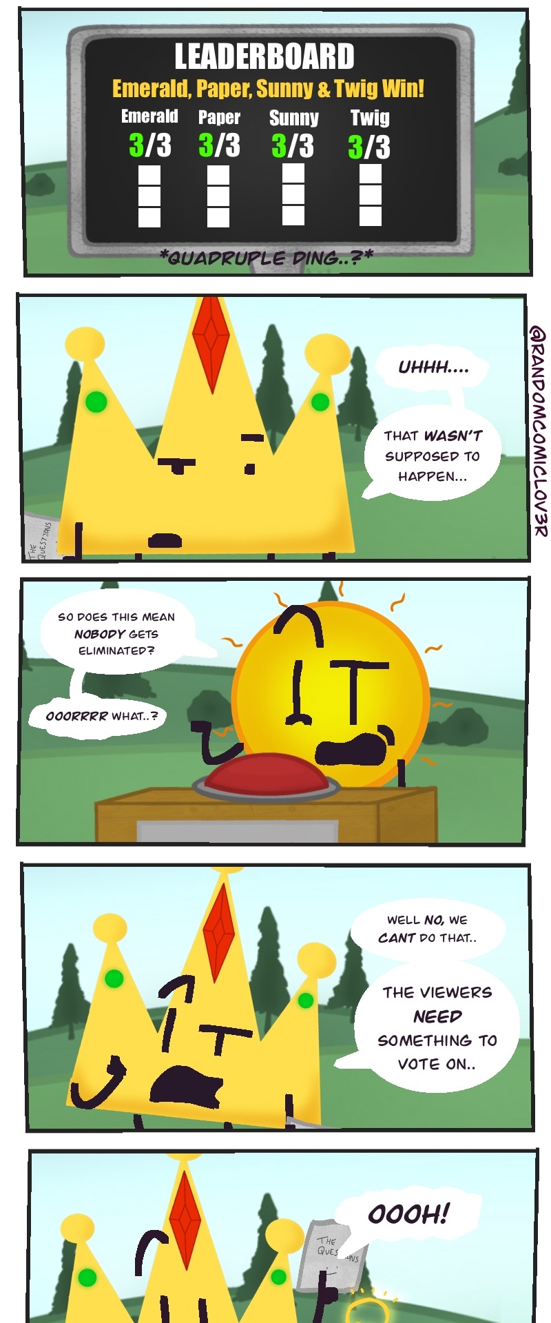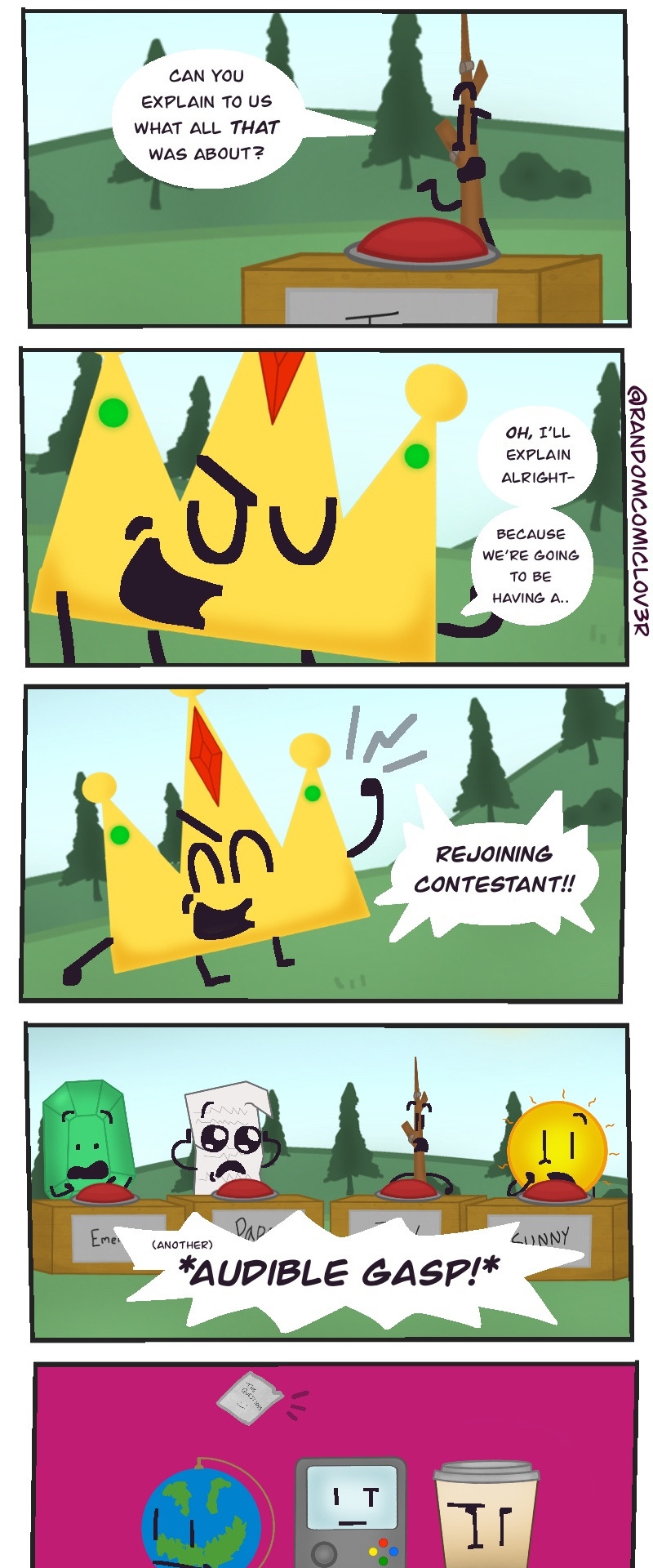 This wacky slice of life object show webcomic takes the typical competition style object show.. TO ITS LIMITS! You get to choose who goes when winning the prize of.. 100,000 BUCKS! (not a lot, but the host is TRYING THEIR BEST! >:[ )