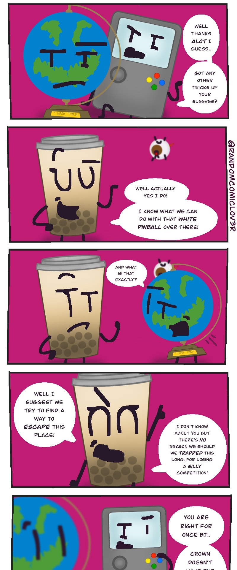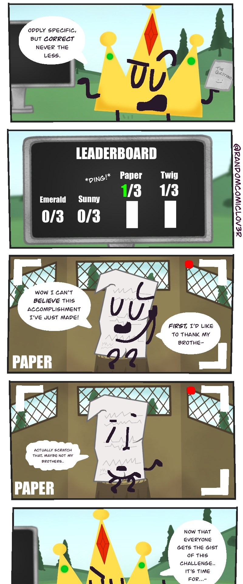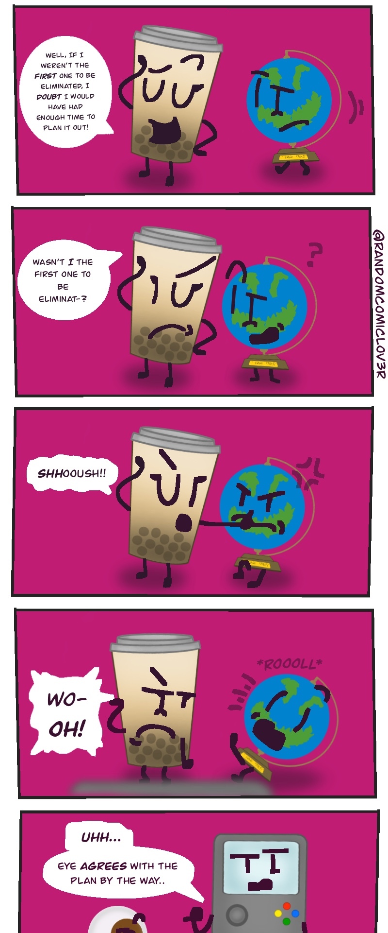 This wacky slice of life object show webcomic takes the typical competition style object show.. TO ITS LIMITS! You get to choose who goes when winning the prize of.. 100,000 BUCKS! (not a lot, but the host is TRYING THEIR BEST! >:[ )