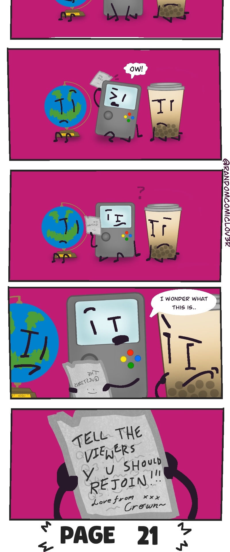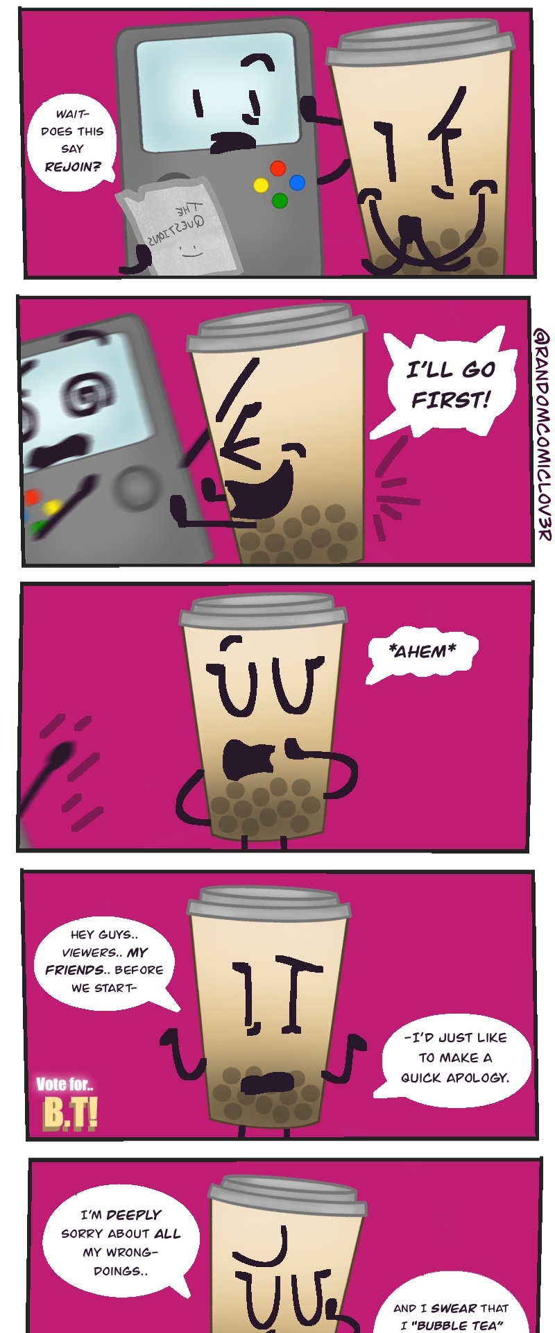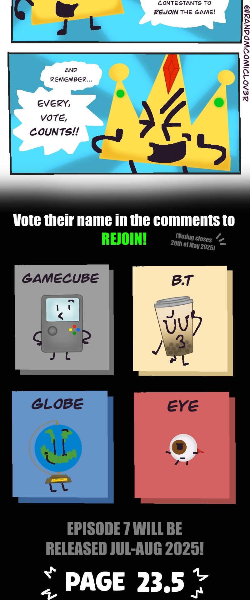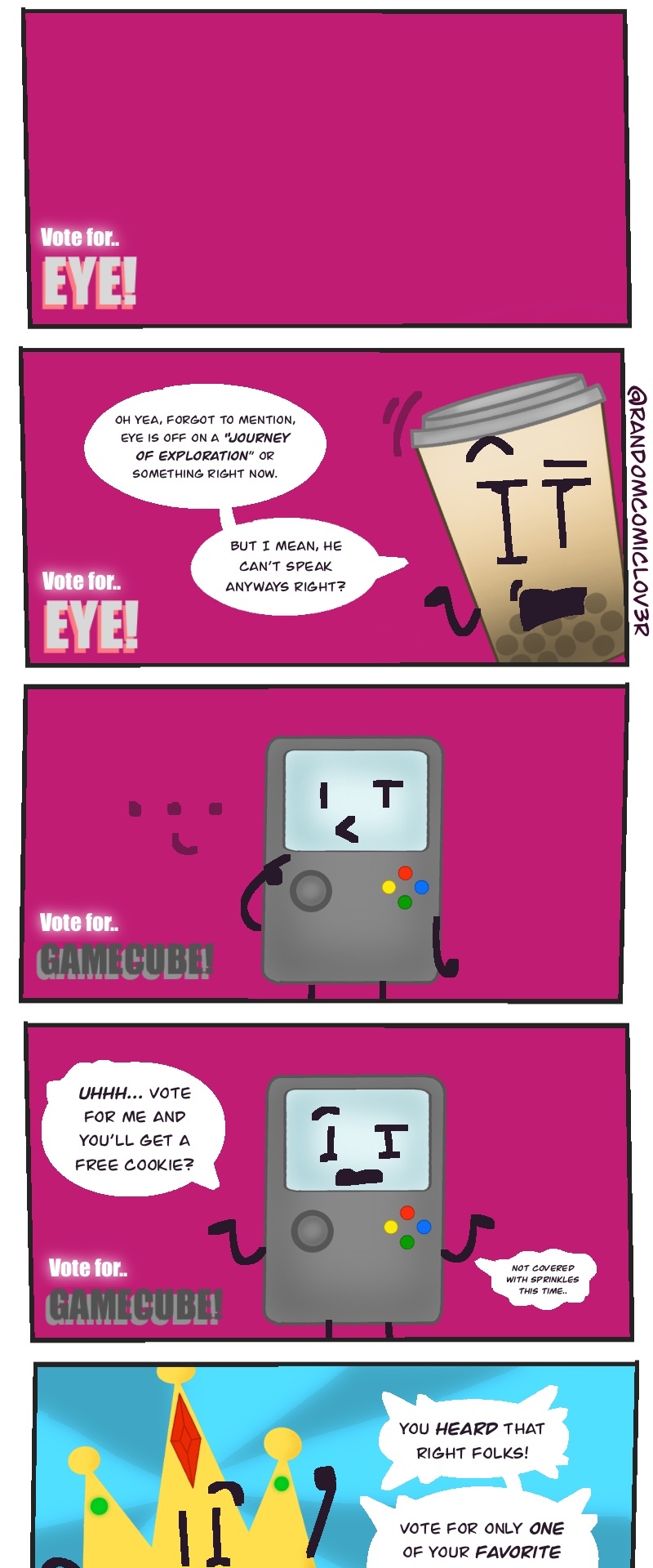 This wacky slice of life object show webcomic takes the typical competition style object show.. TO ITS LIMITS! You get to choose who goes when winning the prize of.. 100,000 BUCKS! (not a lot, but the host is TRYING THEIR BEST! >:[ )