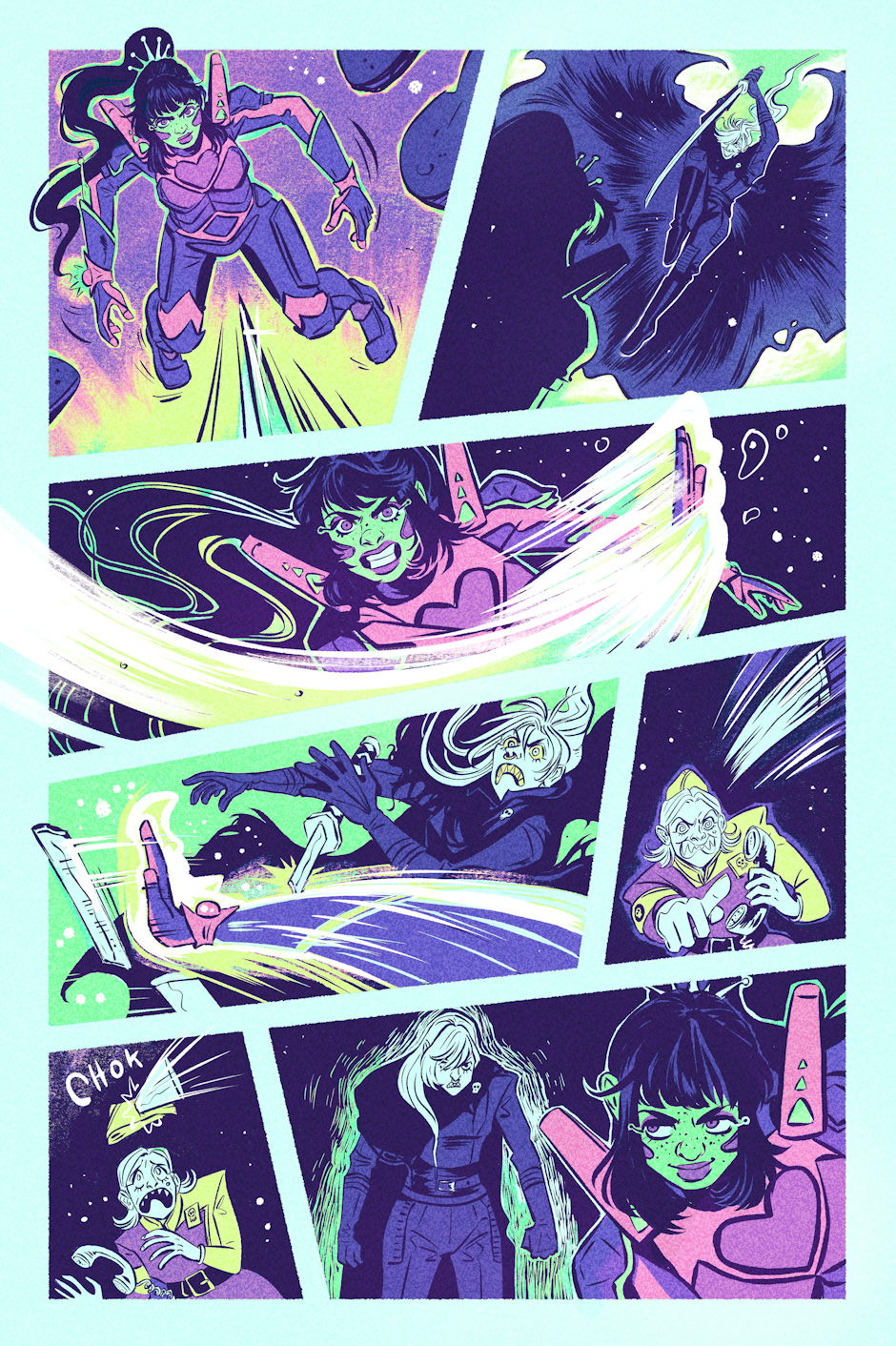 In the distant future, Earth as we know it has crumbled, destroyed and now dominated by mysterious monsters called 'angels'. Safe and sound inside a shielded bubble city, one scruffy queer girl with delusions of heroism stumbles her way through life as a loner. Now that she's found a brand new best friend, life can only get better... right?