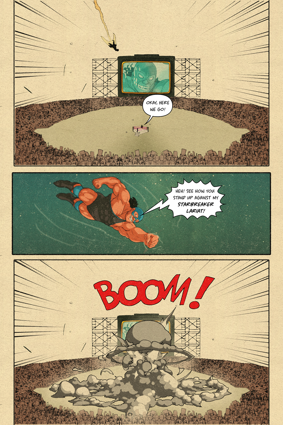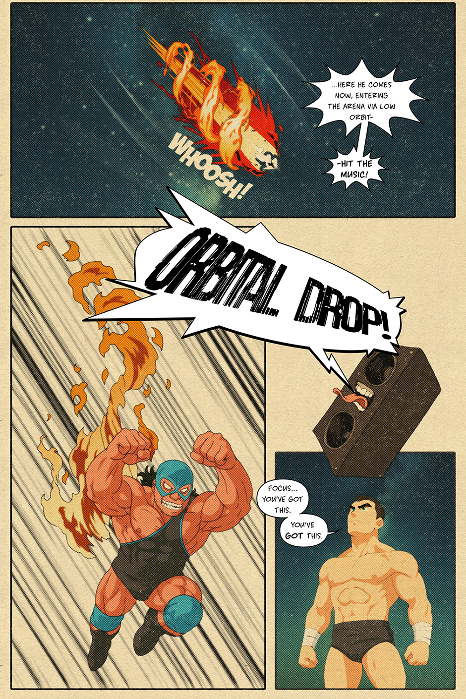 When the crowd unexpectedly pops for him *really pops* the fabric of narrative reality begins to tear. Now, ancient booking gods, cosmic champions, and the current ruler of all existence have their eyes on him. But Caid? He’s just taping up for next week’s match.