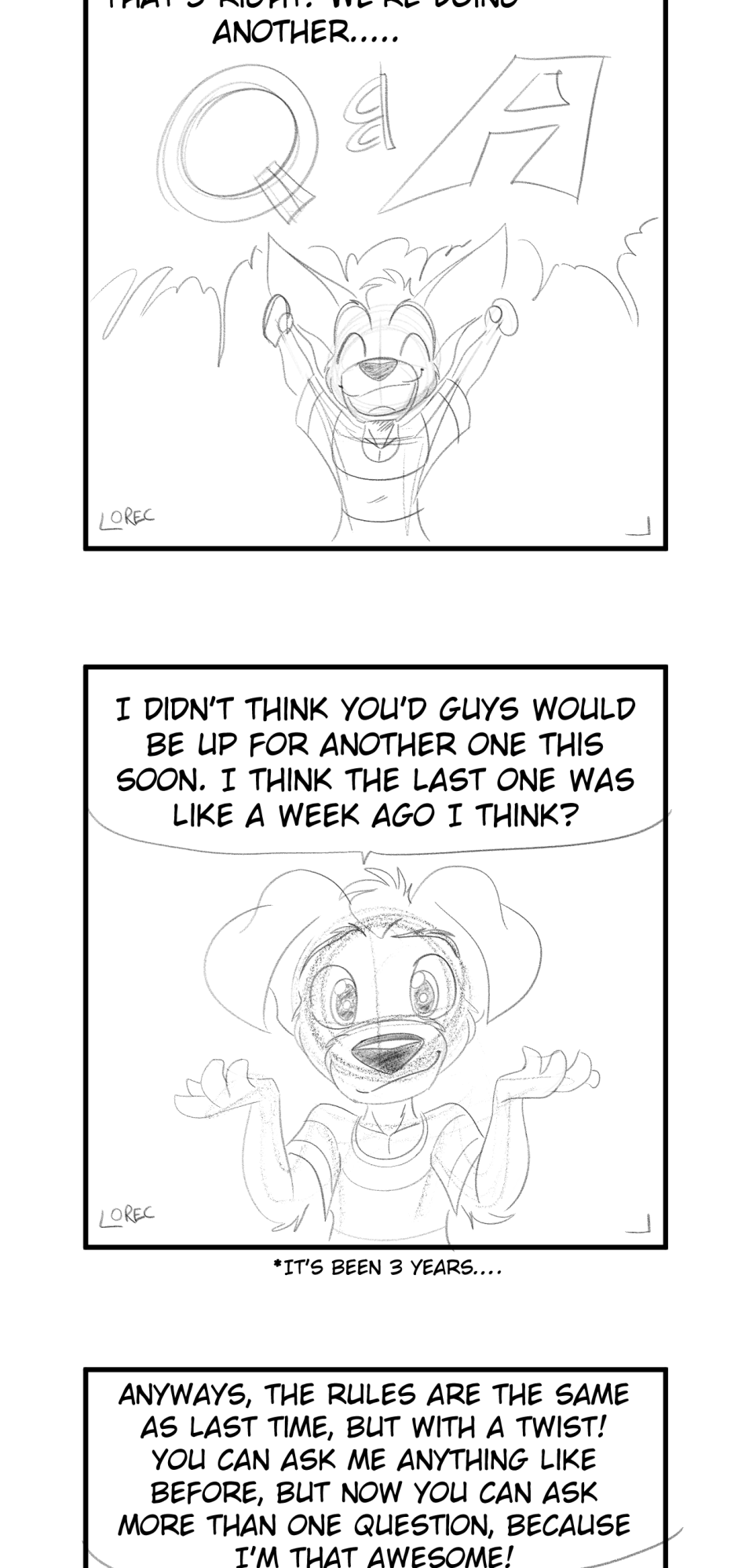 Update November 16th: Submission for questions have been closed since the second week of June. If you have any other questions, please save them for the next one as I want to make this a frequent thing. As for this one, I've be drawing the answers during the holidays so stay tuned for that!