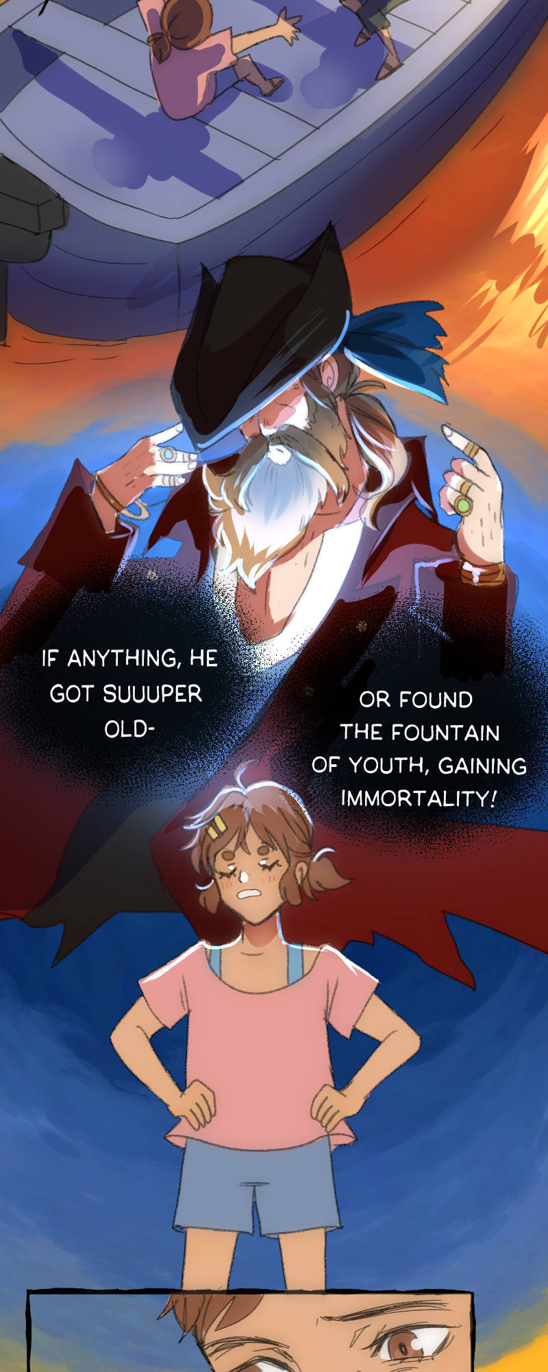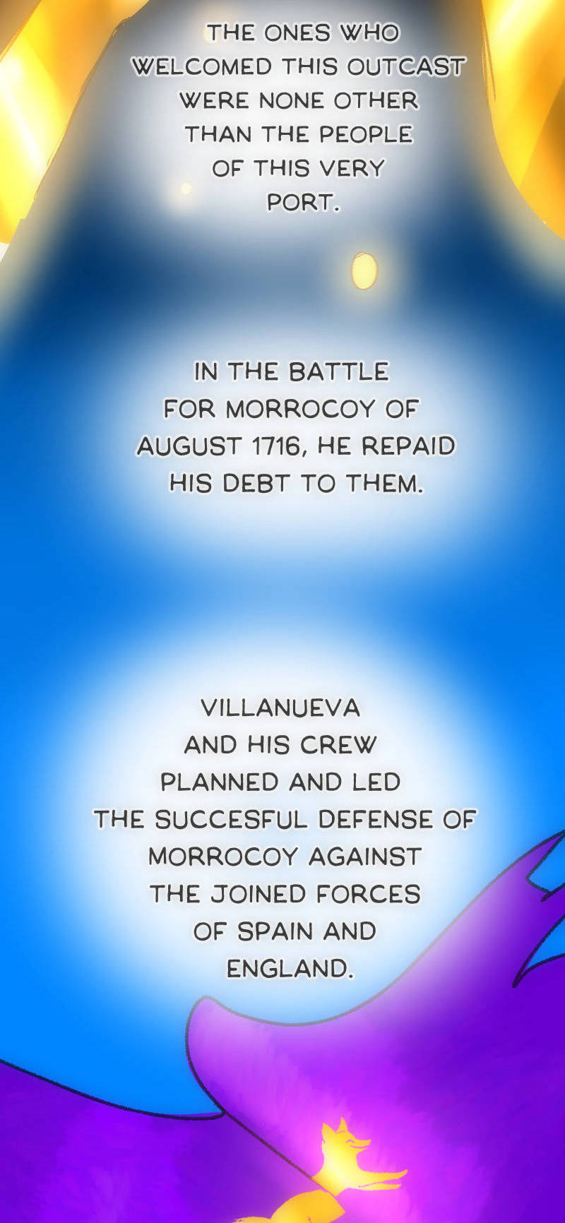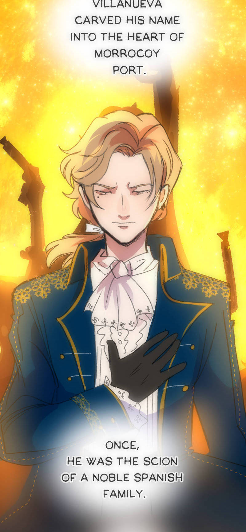 Magdalena is a history student living in the small island nation of Morrocoy, known for its historic role during the golden age of piracy. After she flees a tense family reunion, she finds herself whisked away into the past! In order to return home, she must join forces with the most famed historical figure of the island—Ignacio Villanueva. Updates twice a month, for now.