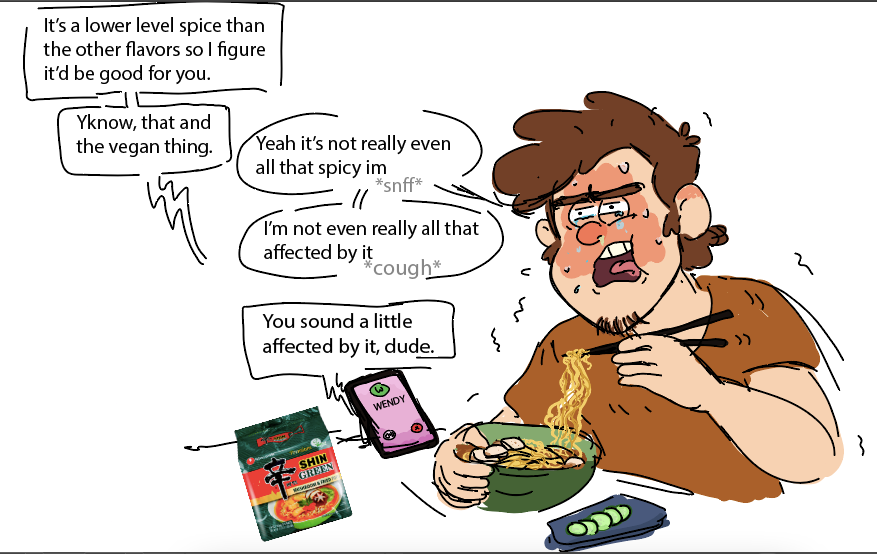 Also I've actually never had shin green before. Please picture it as however spicy you need to make that image the funniest to you.