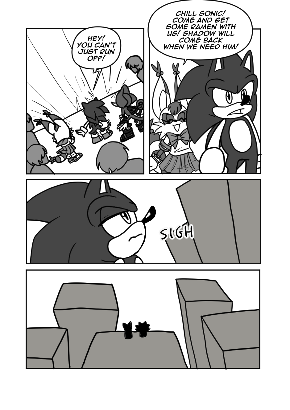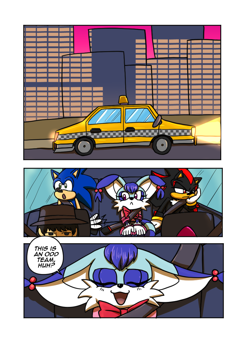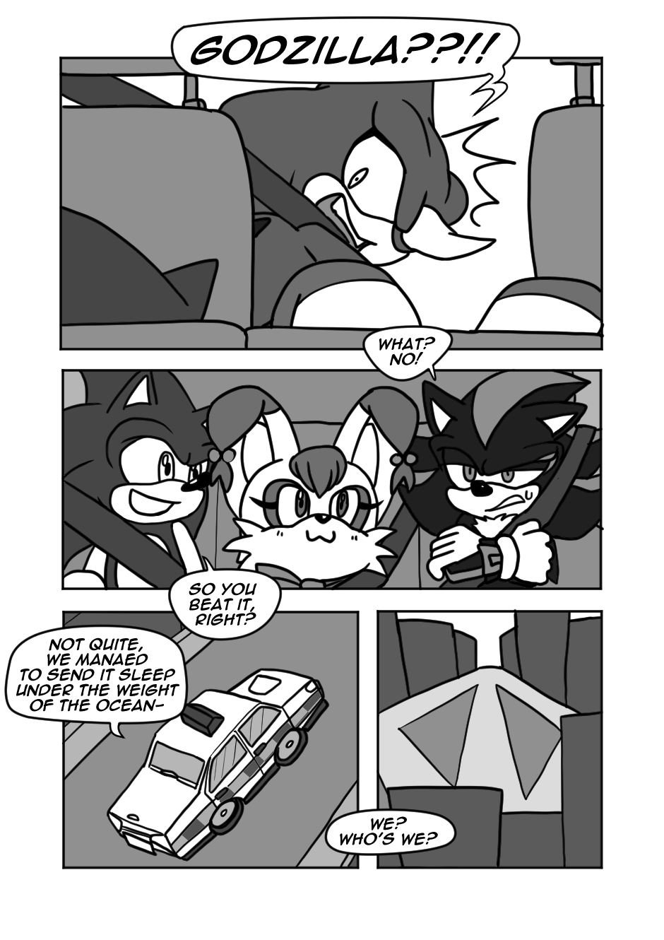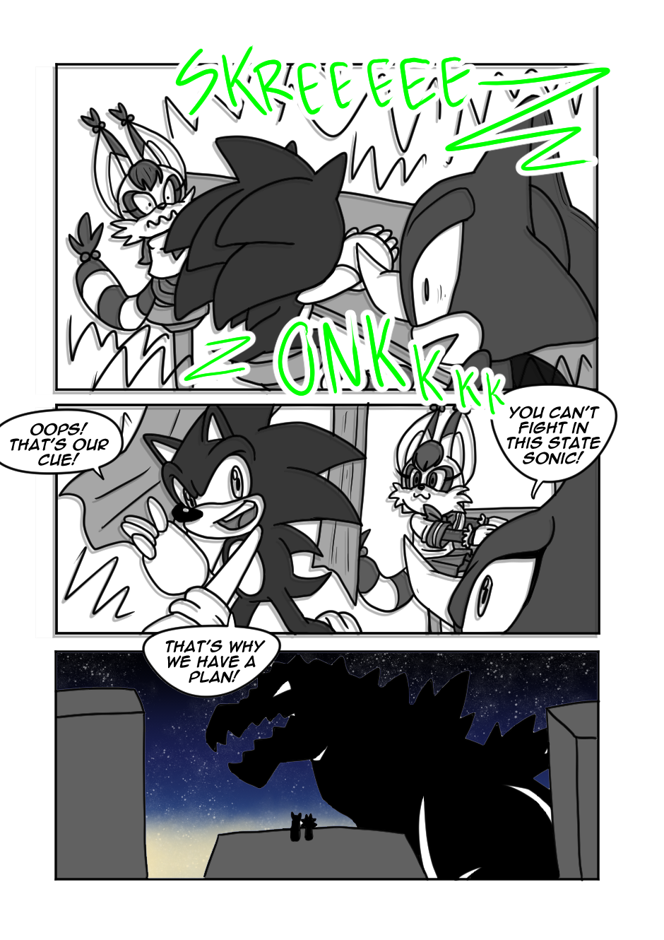 A mysterious creature lurks the streets of Tokyo, and it's up to Sonic and his friends to save the city! I swear I wrote this years before Sonic 3, making comics takes a long time!