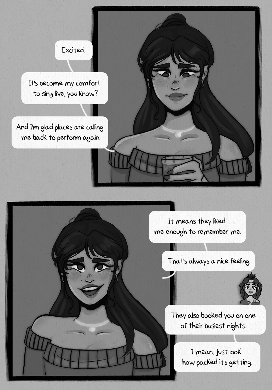 Author, I've been really curious to know, so I'm hoping you'll answer my question: was your story influenced in any way by the song "Colours Of You" by Baby Queen? I love that song and listen to it frequently, and it always reminds me of this comic whenever I hear it 😊