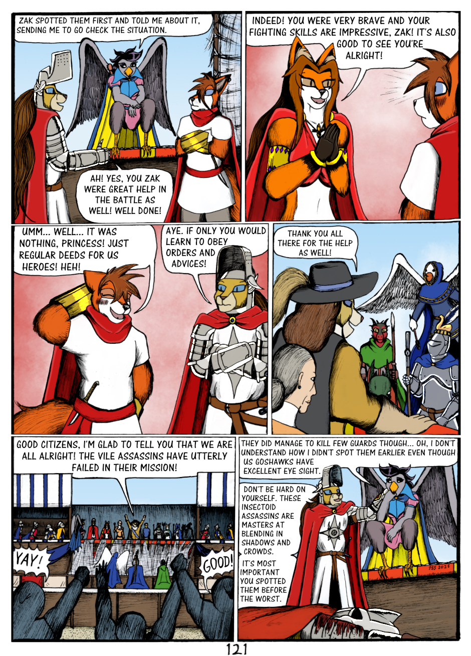 Assassins have been defeated and the poison gas has been blown away so all is well again for now. Everyone gets their thanks, even Zak despite his fumbling. Zak still didn't learn to be nicer though.