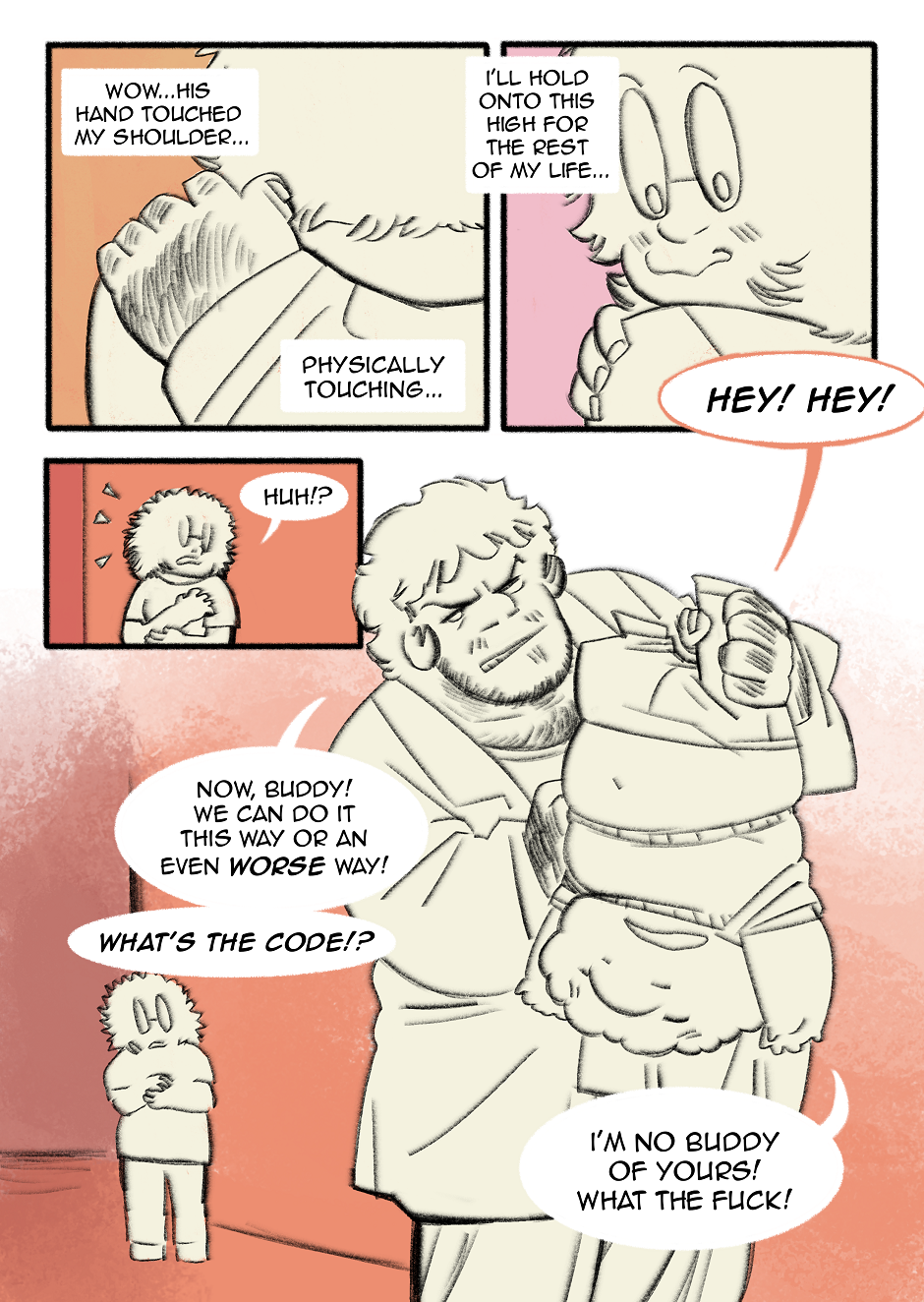 Hiya! I'm sorry for the long hiatus, I just couldn't do a comic while I had other stuff happening. I will be using this coloring method for the next pages, I'll likely recolor em but doin it like this is a lot faster than my other coloring method. Still experimenting.