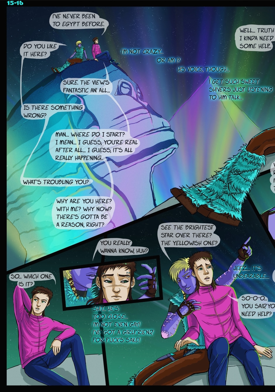Here's where the guys are starting to talk to each other... And Brian finds out he's really quite smitten with Daeh Lynn. If you want a full sized page, you can get it through my Patreon (for $3+): https://www.patreon.com/ShinmayaLoonyFred