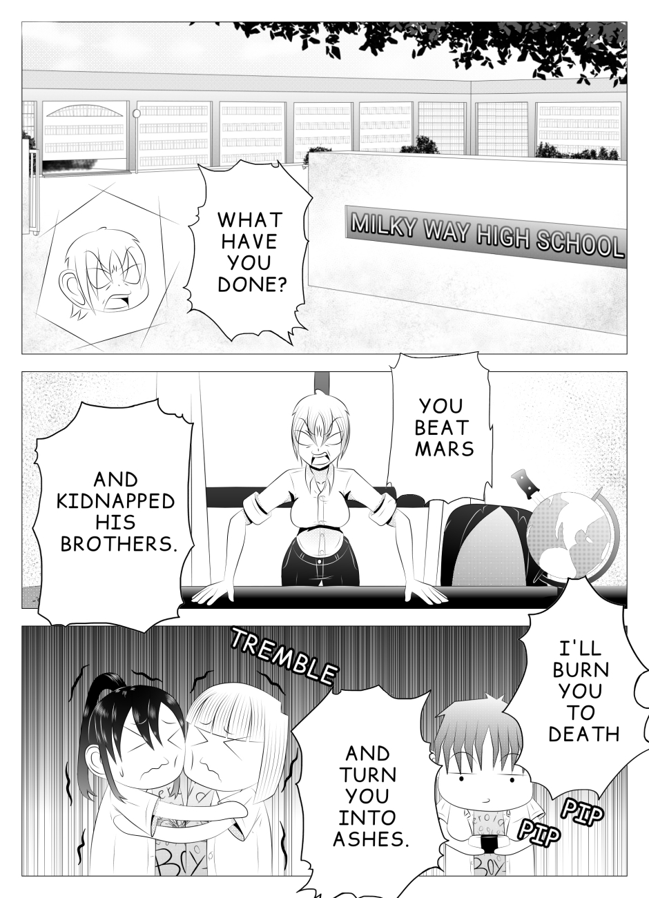 The story talks about our hero Earth, who studies at the Milky Way High School and suffers from a human virus that no one else has been infected with.
