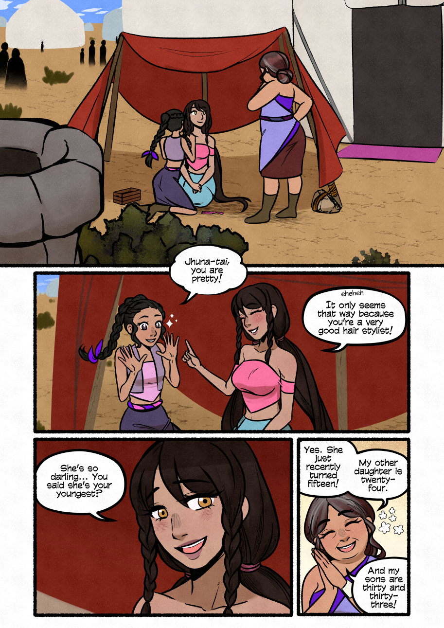 After her home is destroyed, Jhuna is taken to live with a tribe of desert nomads. She must adapt to her new life whether she wants to or not, and learn to survive in such harsh conditions among people she shares neither a language or culture with. Some parts of her new life might not be so bad, though…