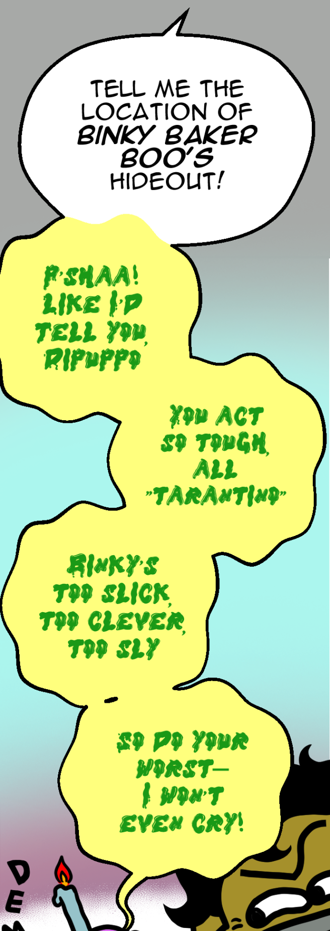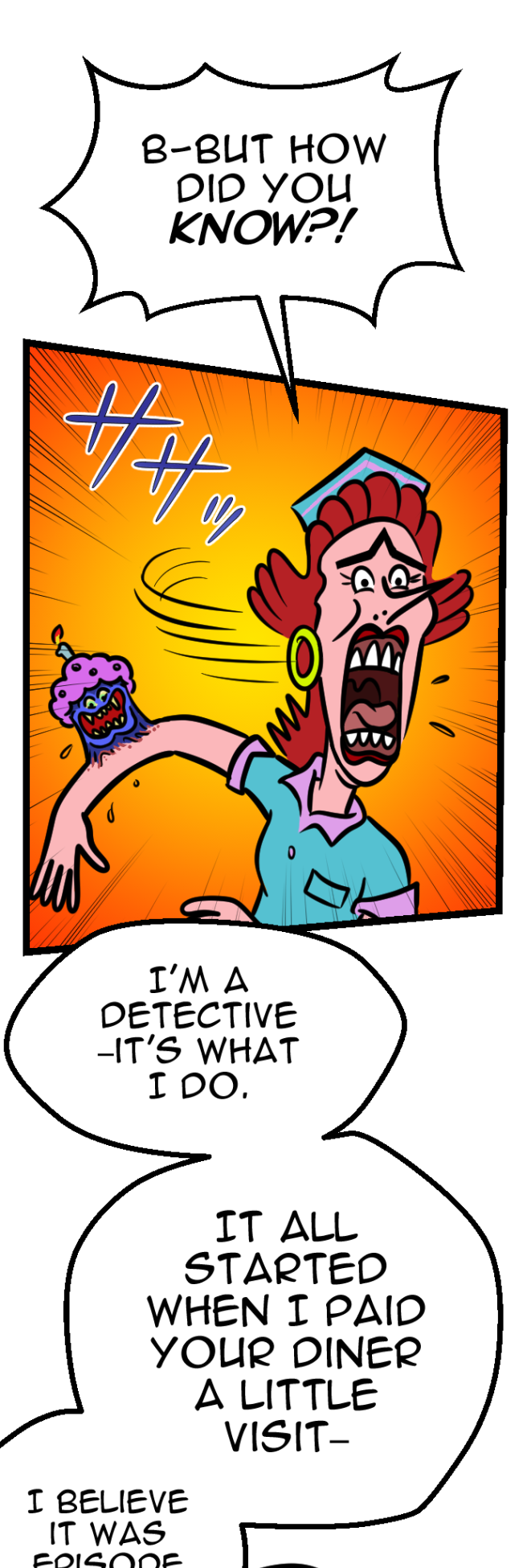 At the station, DiPuppo cracks open a nursery rhymes book to squeeze answers—and the demonic cupcake, Mr. Cuppy—out of Gertie, as the hunt for Binky Baker Boo heats up.