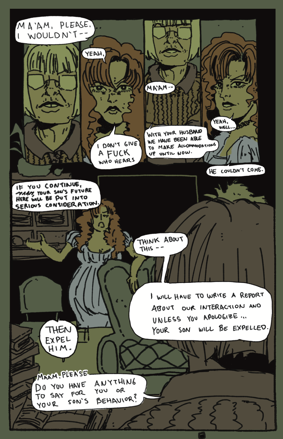 Bobby is called to her son's school after he is suspended.