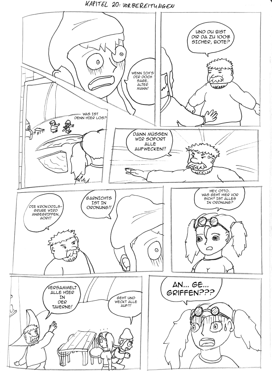 Die Bewohner der Krokodilsgrube versammeln sich an der Taverne. Der Bote erzählt was ihm passiert ist. Die Vorbereitungen werden getroffen, aber kommen sie rechtzeitig?