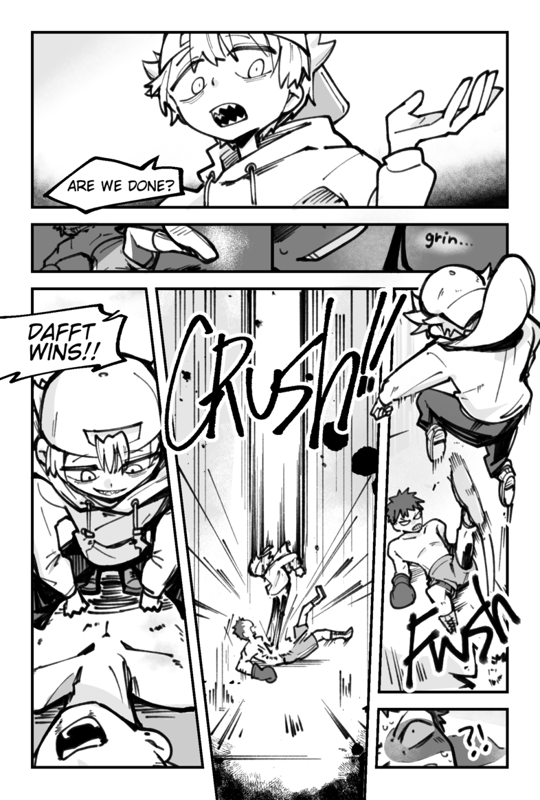 Dafft is about a lanky sharp teethed weirdo who befriends a tall, silent bartender. They join a tournament to fight the strongest people alive! Who's your favorite?