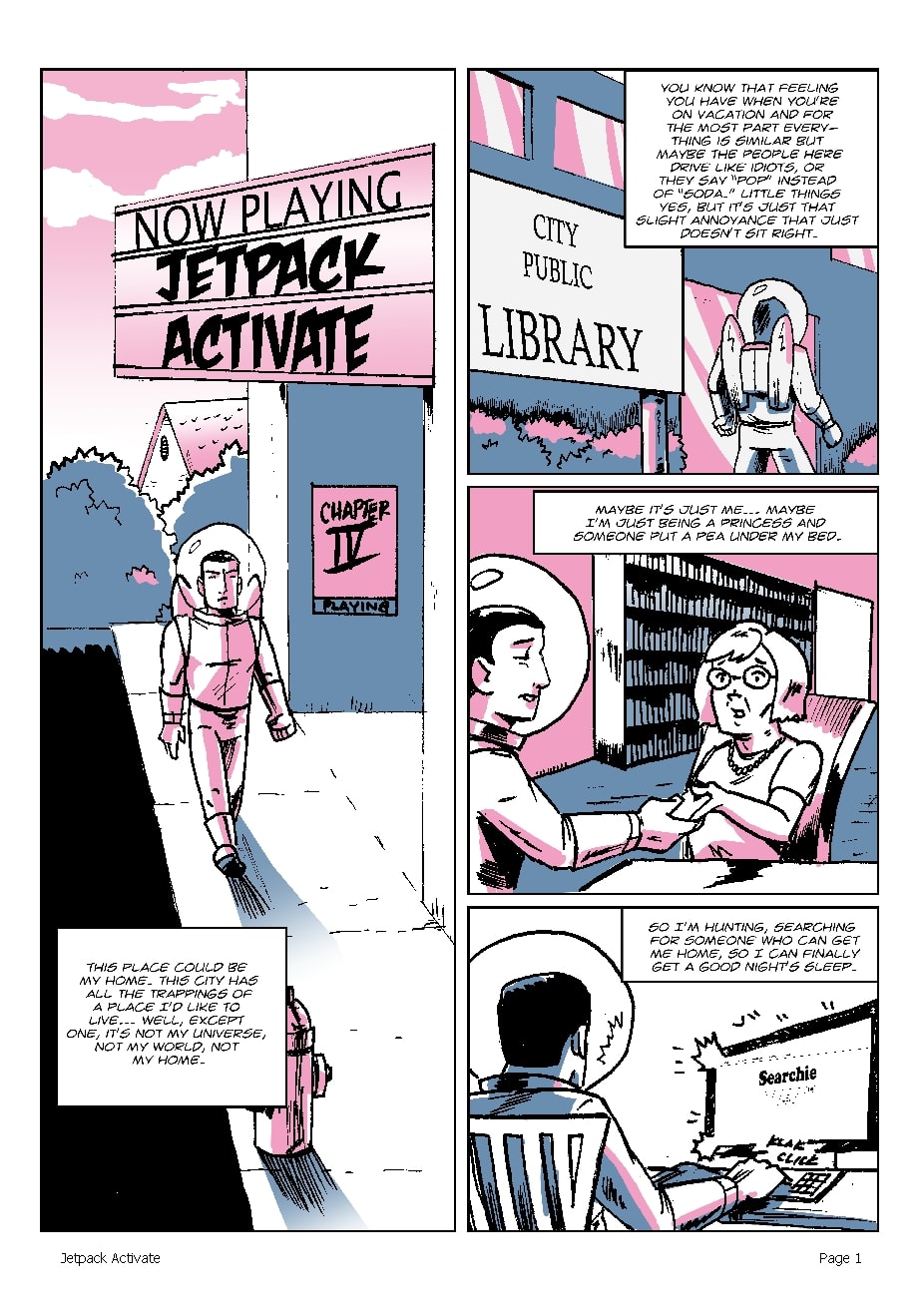 Jetpack Activate is an Action/Sci-Fi webcomic partially inspired or in the vein of The Adventures of Tintin, Usagi Yojimbo, and Astroboy.