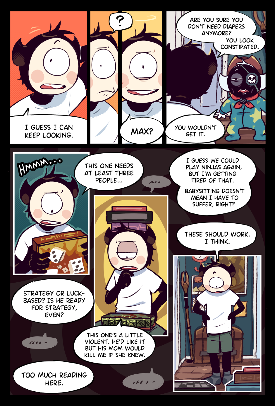 I'm working on my animation skillz so only one page today! I'm also going on vacation at some point, so I'll have to prep some extra pages before I leave. I doubt there'll be any commentary for those ones. I don't plan on bringing anything drawing related aside from a sketchbook. Think it'll be good to not be glued to a screen for the time I'm gone.