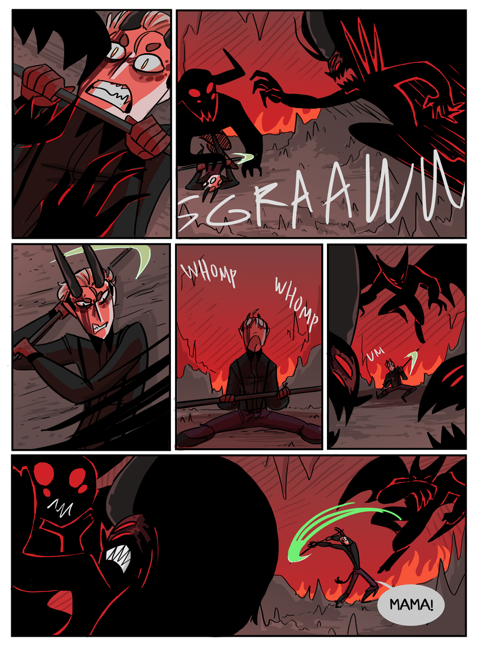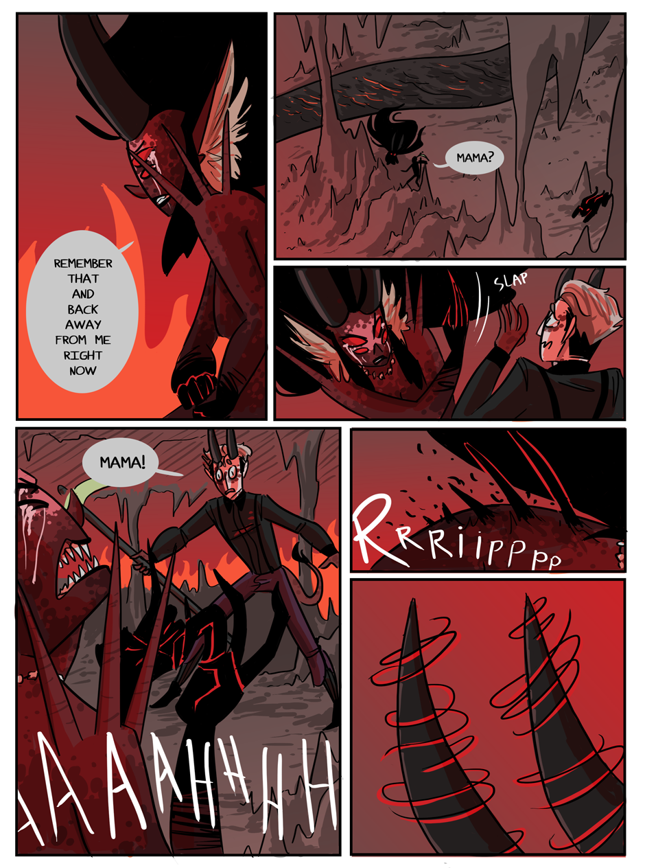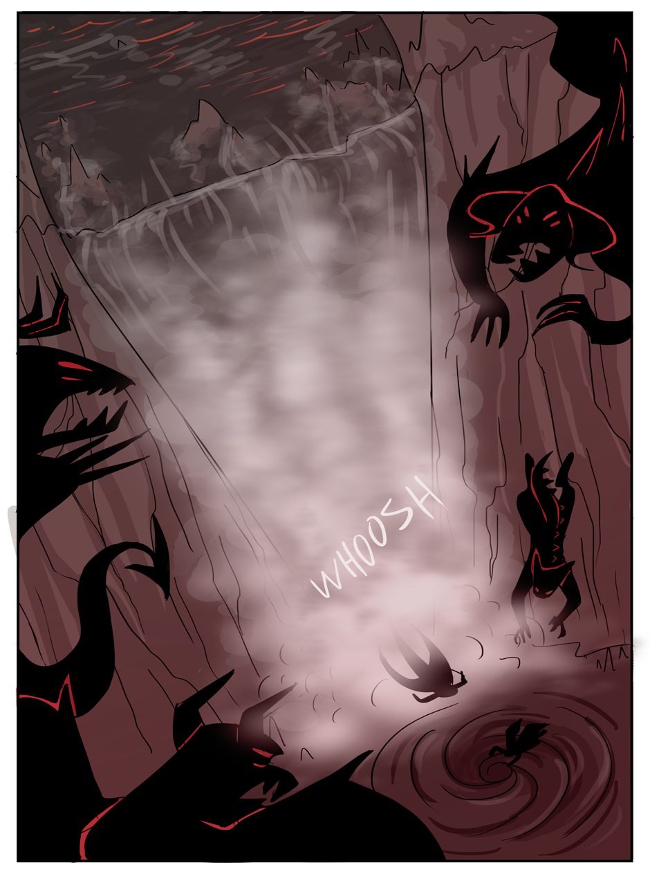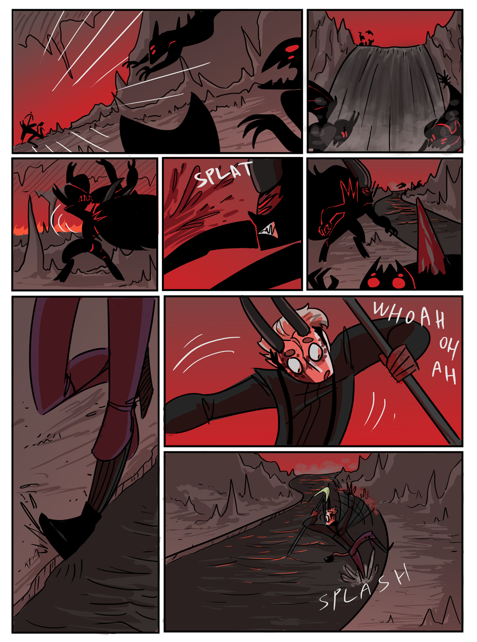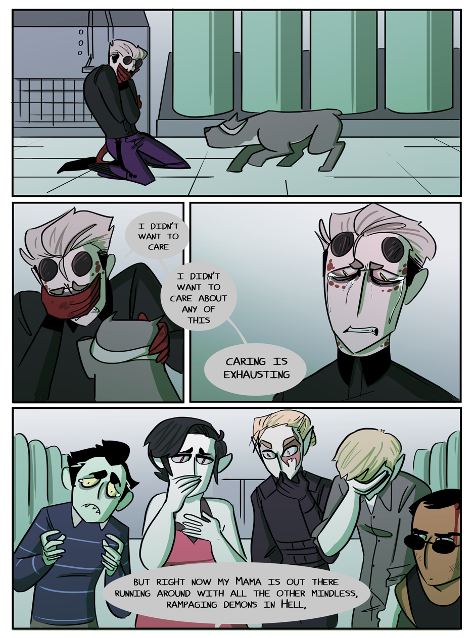 the penultimate chapter begins! Hell looks slightly different now because i decided that while the way i was coloring it before set the mood i wanted, it was too visually flat. enjoy :)