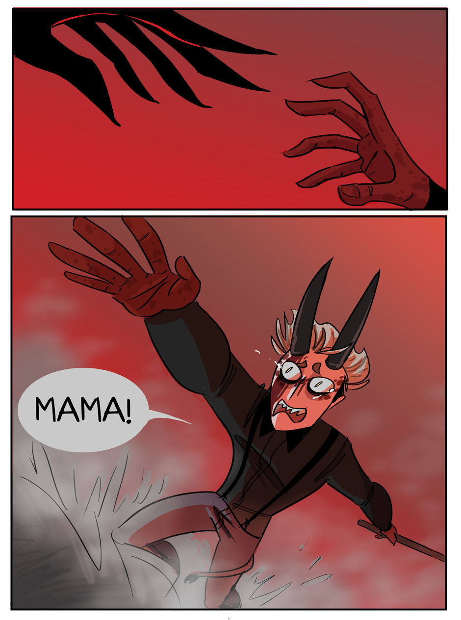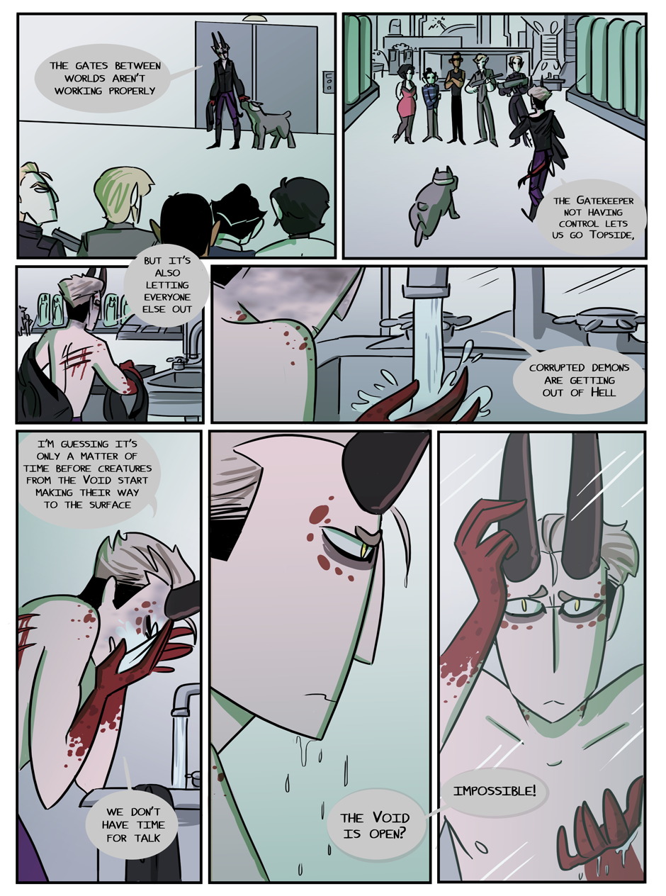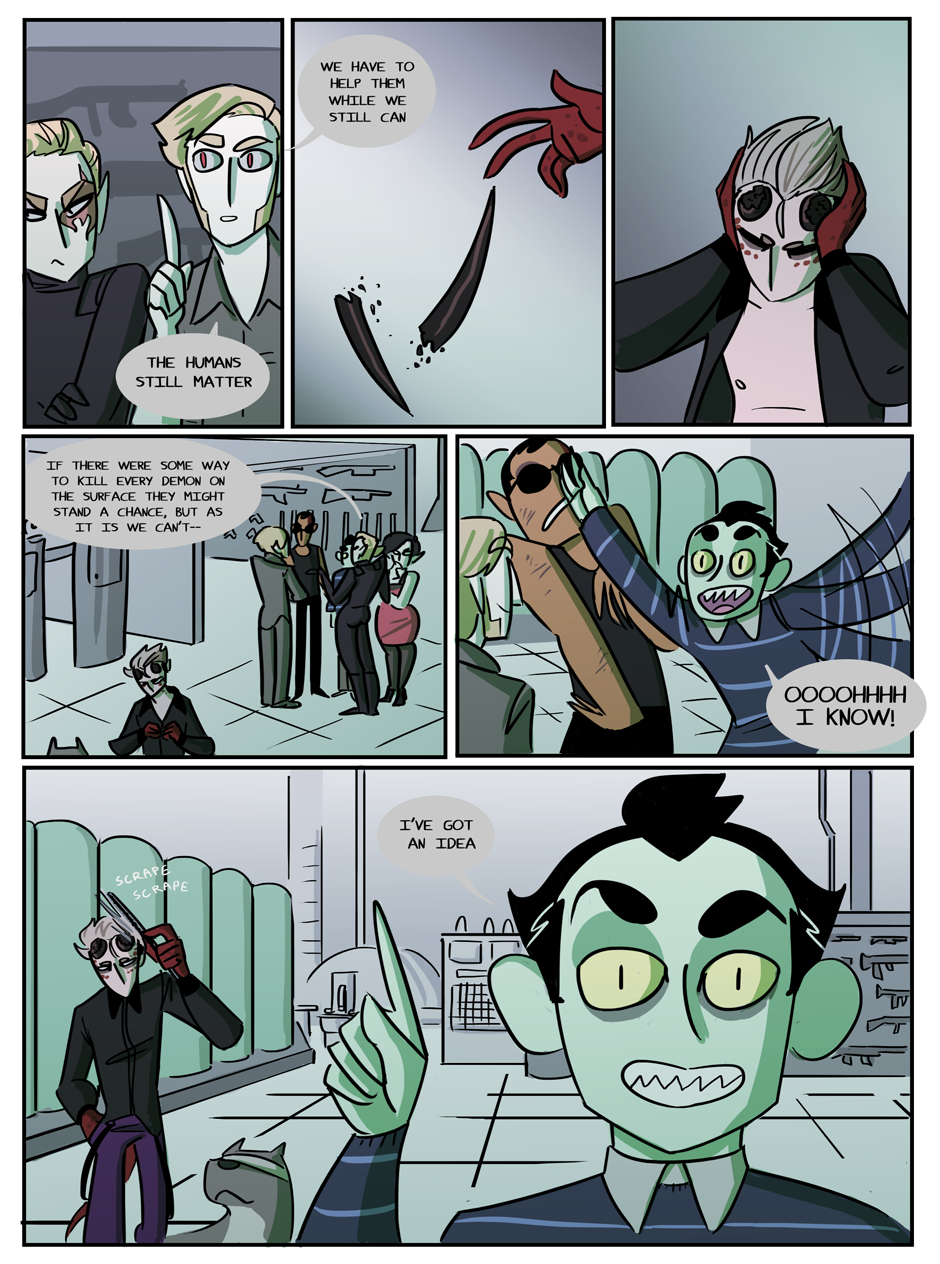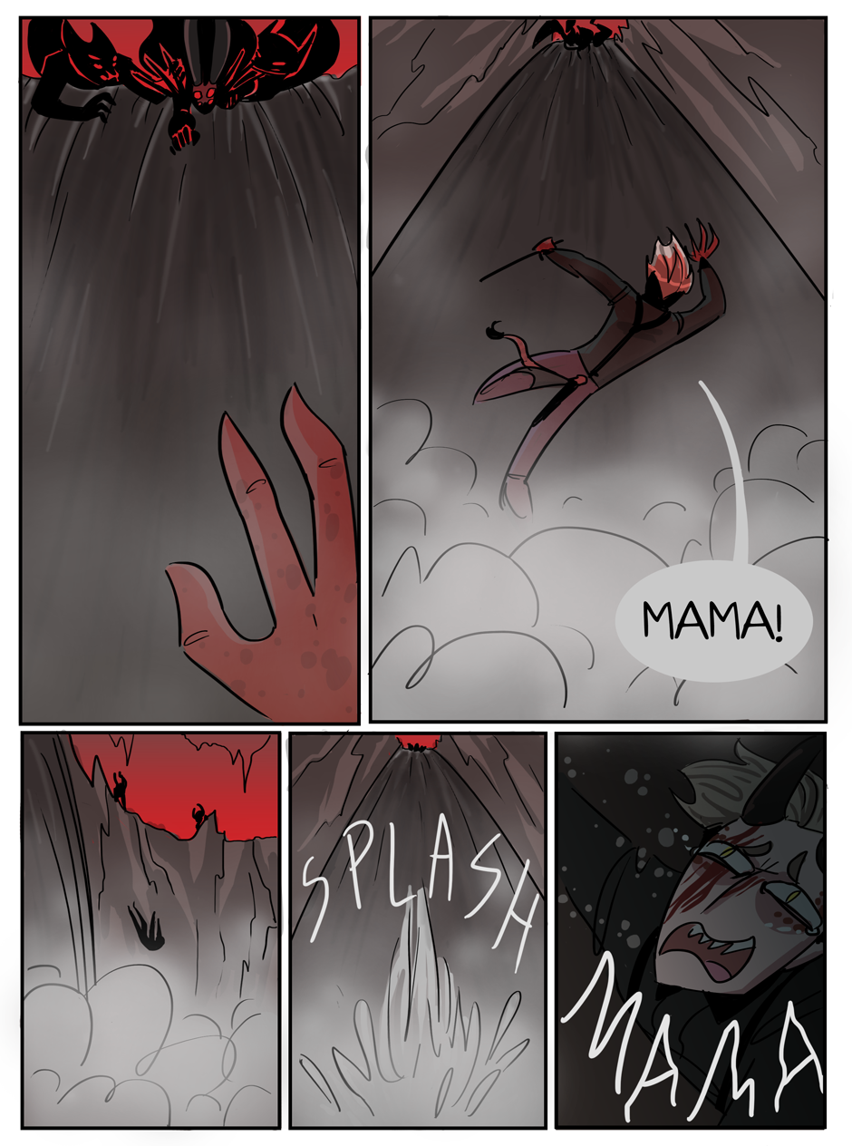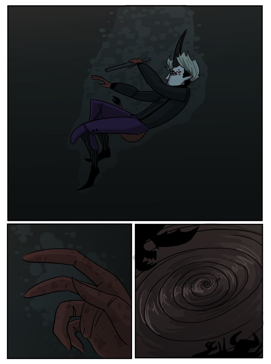 the penultimate chapter begins! Hell looks slightly different now because i decided that while the way i was coloring it before set the mood i wanted, it was too visually flat. enjoy :)