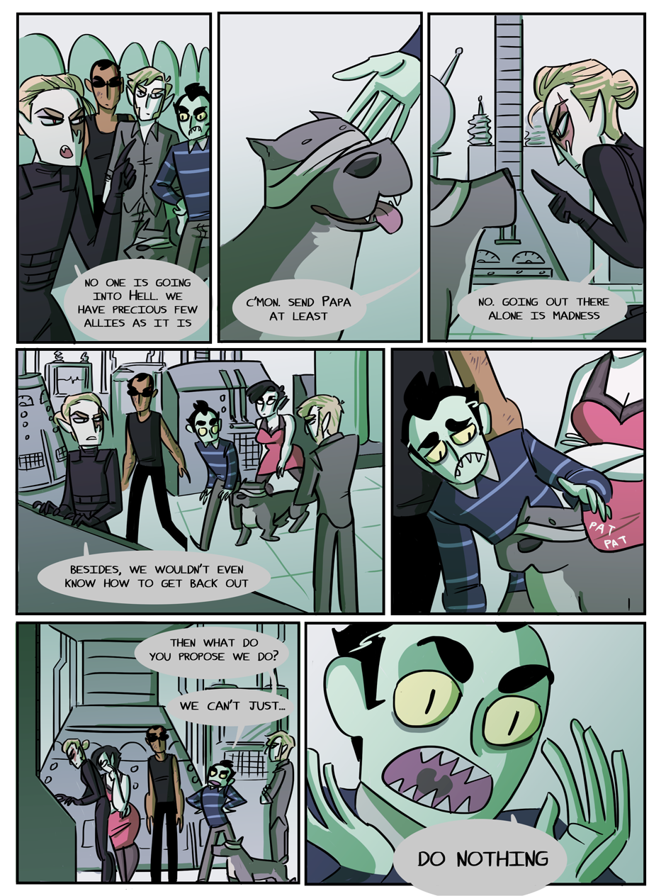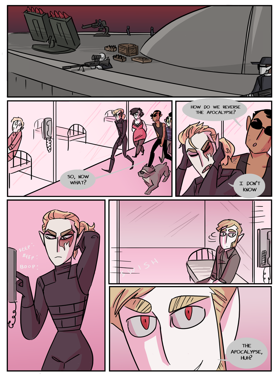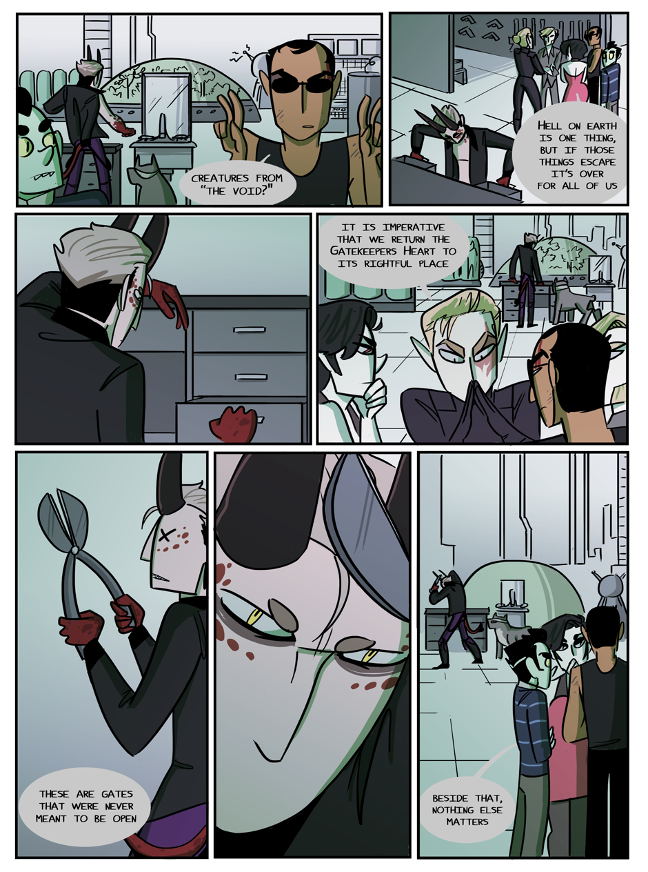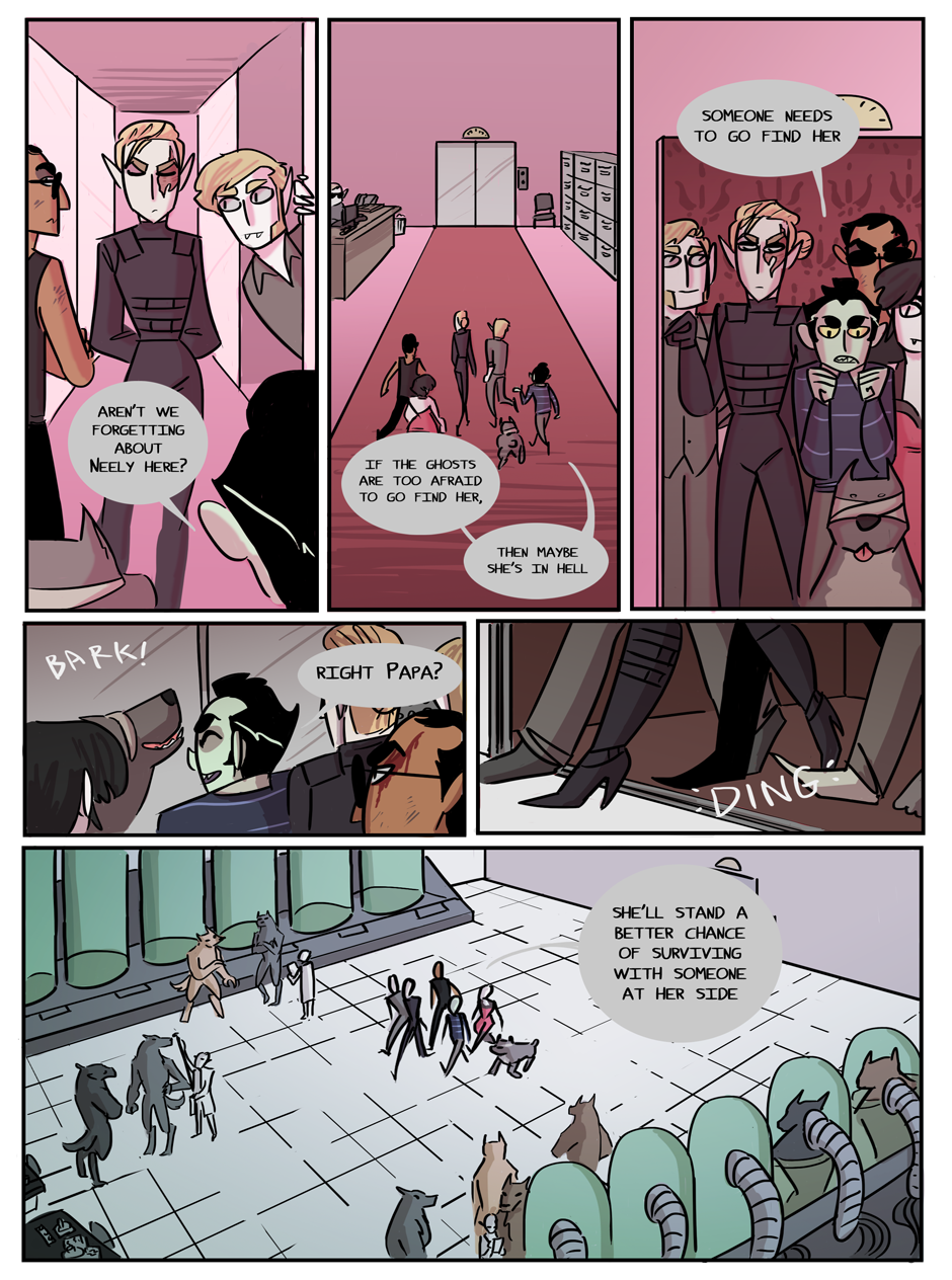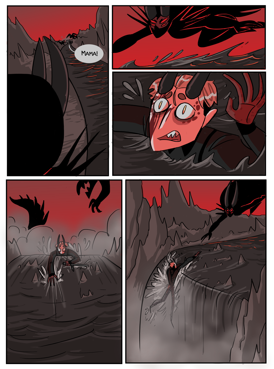 the penultimate chapter begins! Hell looks slightly different now because i decided that while the way i was coloring it before set the mood i wanted, it was too visually flat. enjoy :)