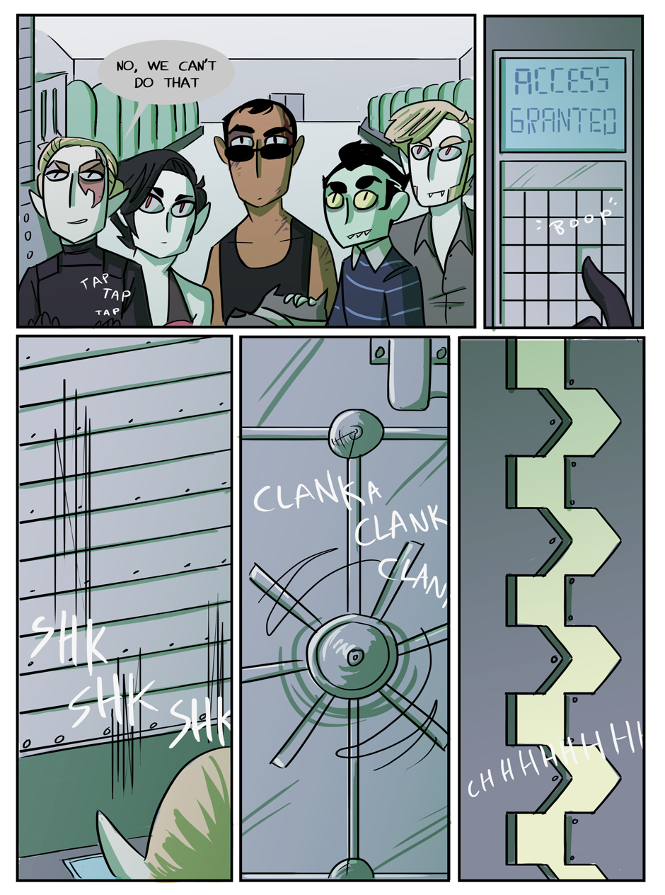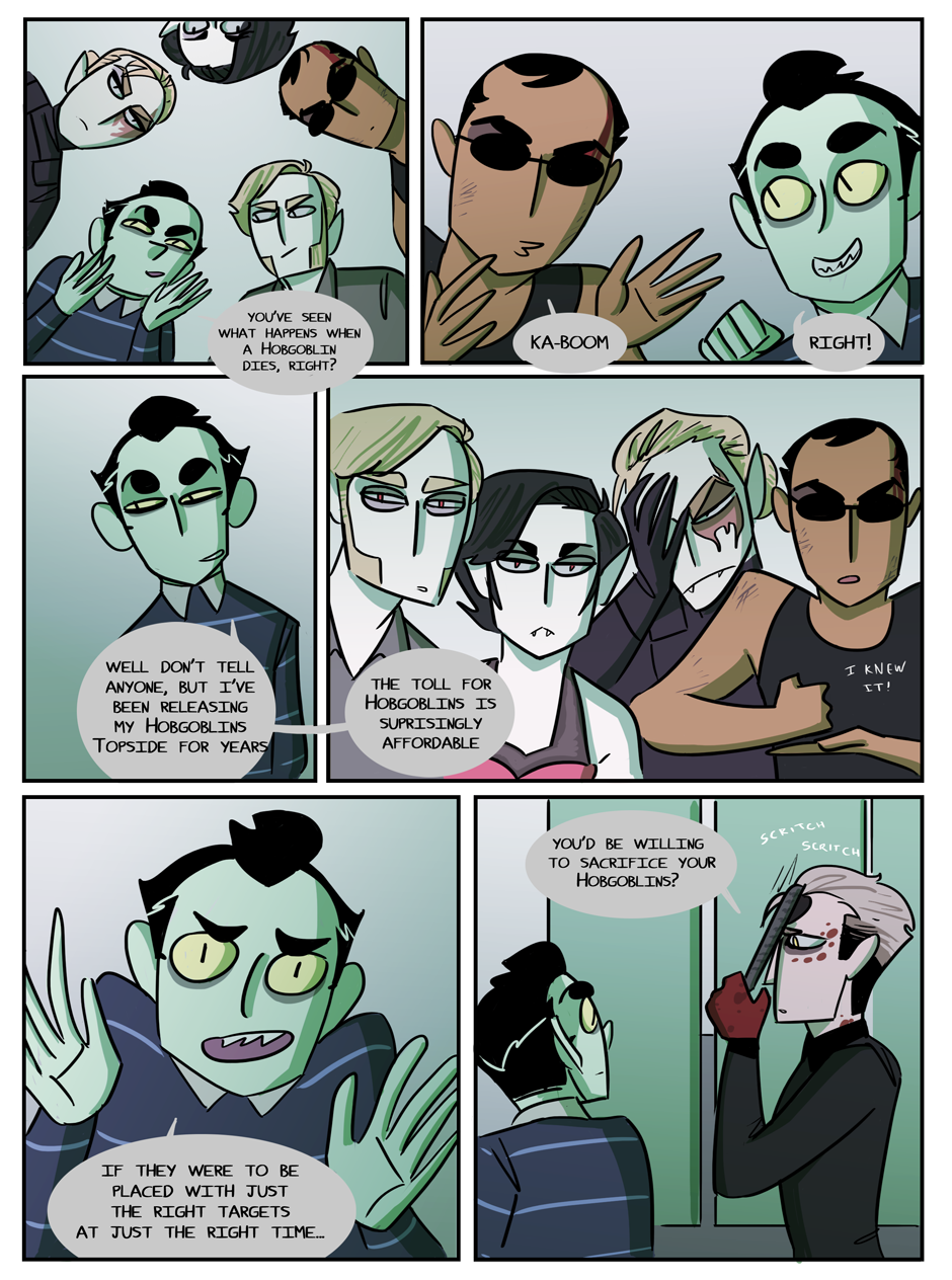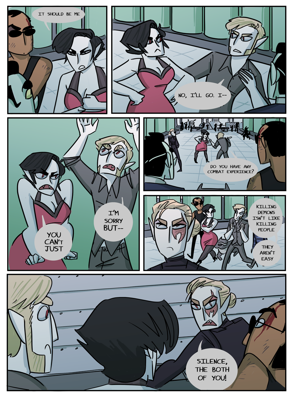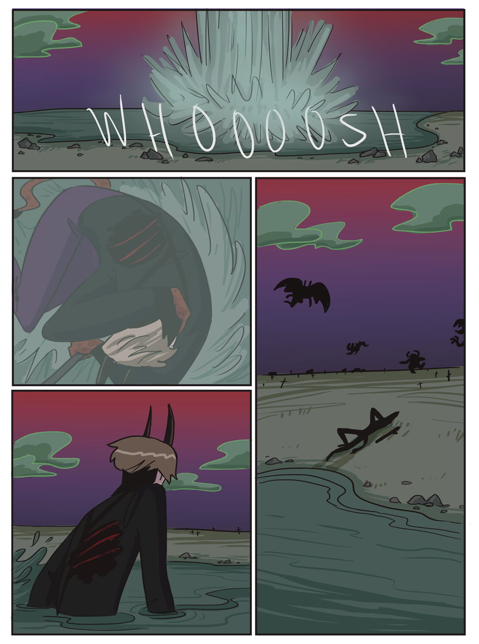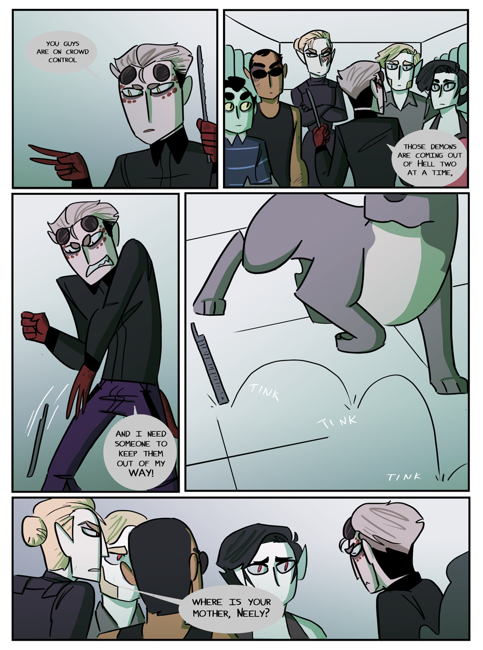 the penultimate chapter begins! Hell looks slightly different now because i decided that while the way i was coloring it before set the mood i wanted, it was too visually flat. enjoy :)