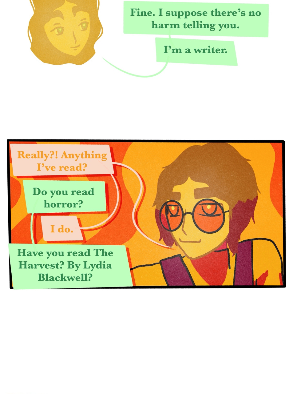 Set within the In-Between and a small town in Maine in the 1970s, SPINES investigates the events leading up to the deaths of a failed musician, a strange woman named Lydia, and a mysterious man armed with a butcher knife.