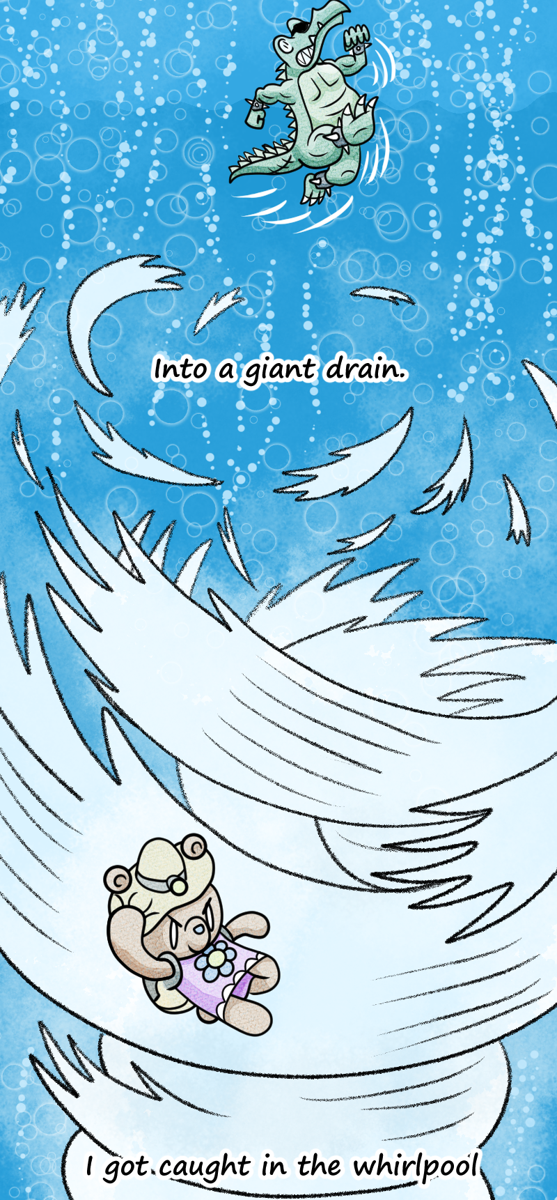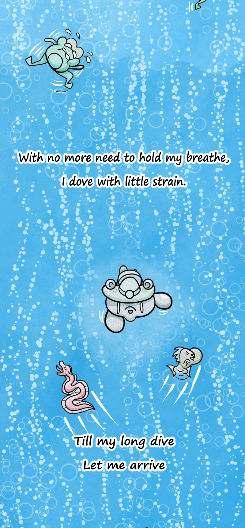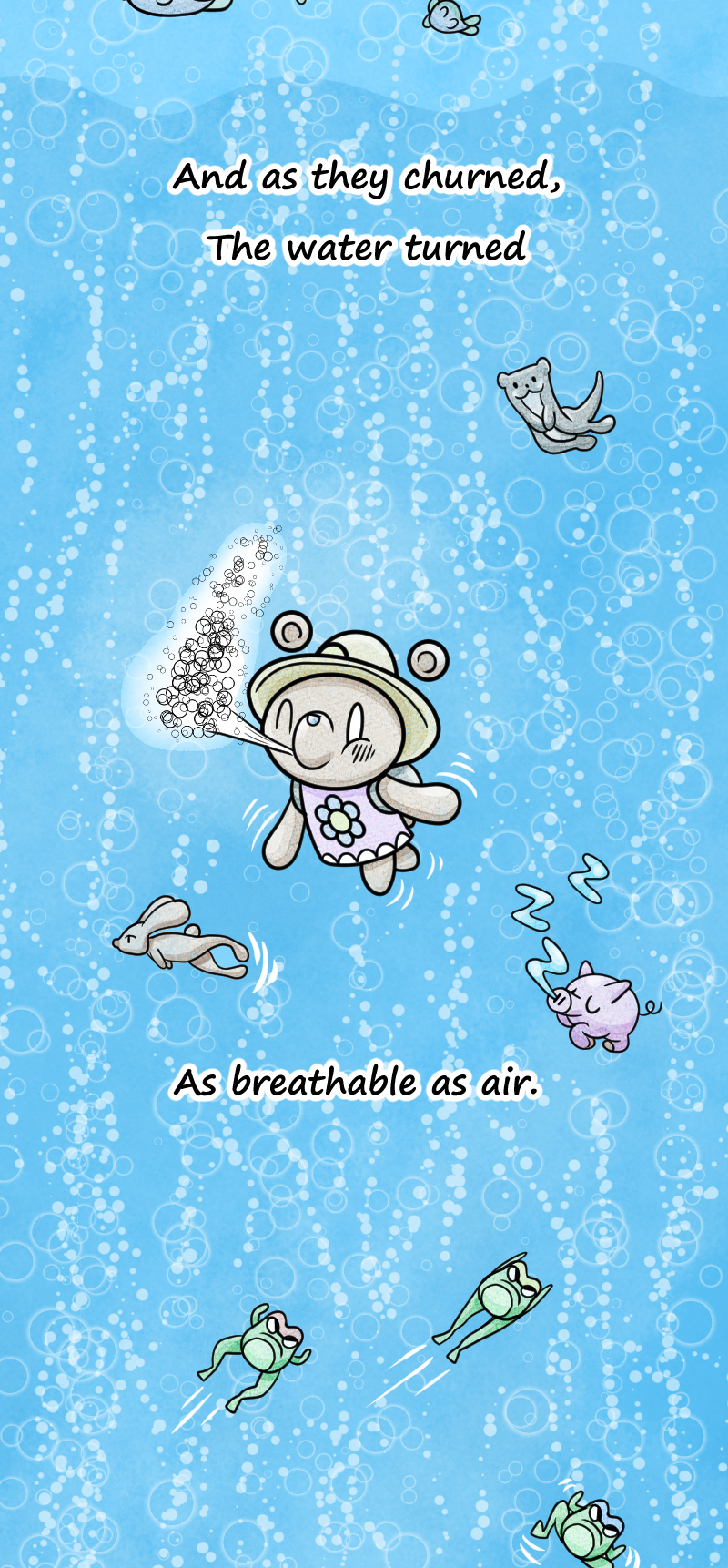 A Single-long panel graphic poem originally published for the Webtoons Legends 2025 Contest. The story follows a young bear named Berry after she finds a seemingly bottomless hole in the middle of the woods. Filled with curiosity, she ventures down to see the hole's bottom, running into countless oddities, wonders, and even dangers. But what does she finally find at the end of her journey? You will just have to read to find out. Preferred reading method is on a phone or other handheld device.