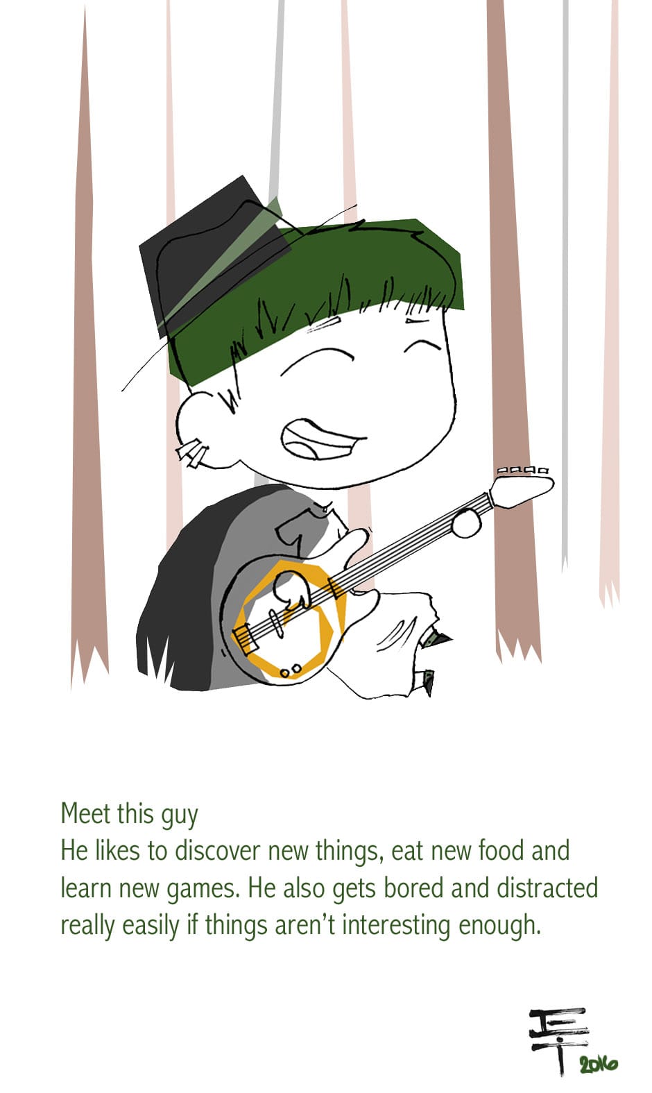 I'm finding it really hard to draw myself, it's... weird. So I'm gonna introduce a few new characters to tell my stories for me. This is a character I made up. So it's not anyone I actually know.