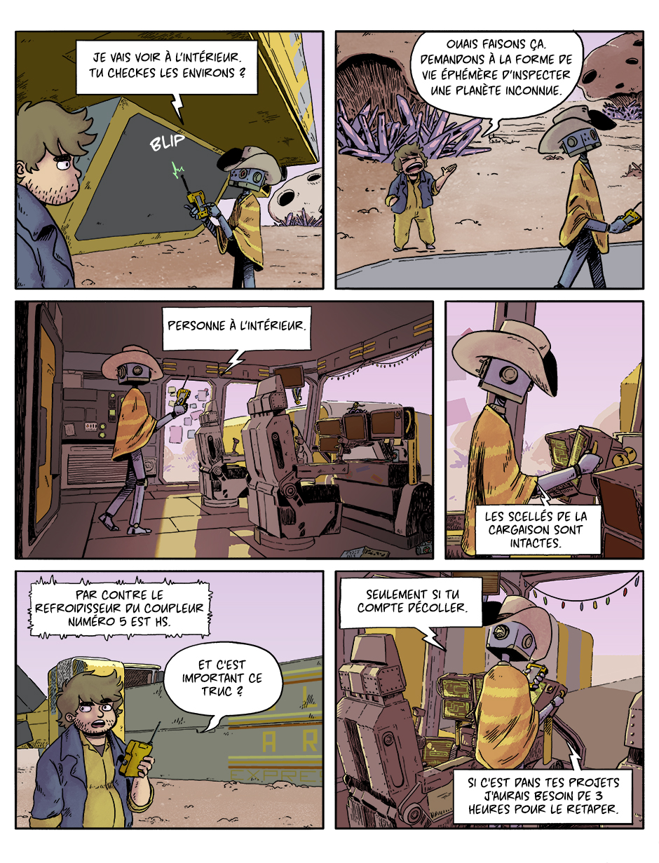 Axel et Wayne traversent la galaxie pour le compte de SolEx (Solar Express), compagnie de transport spatial de fret.