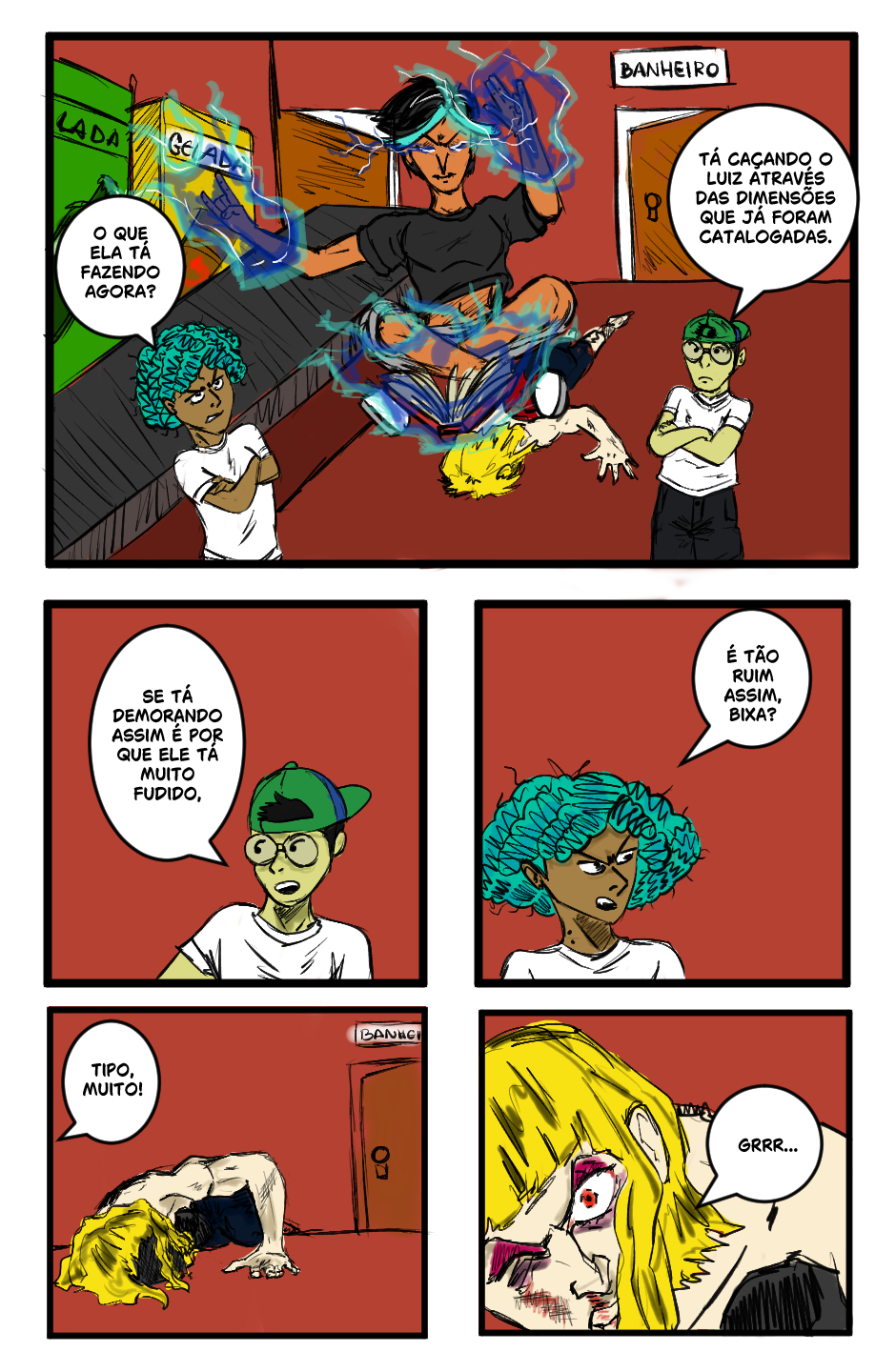 Enquanto Ana está procurando por Luiz, Arlindo e Lucy discuntem sobre onde o garçom pode estar.