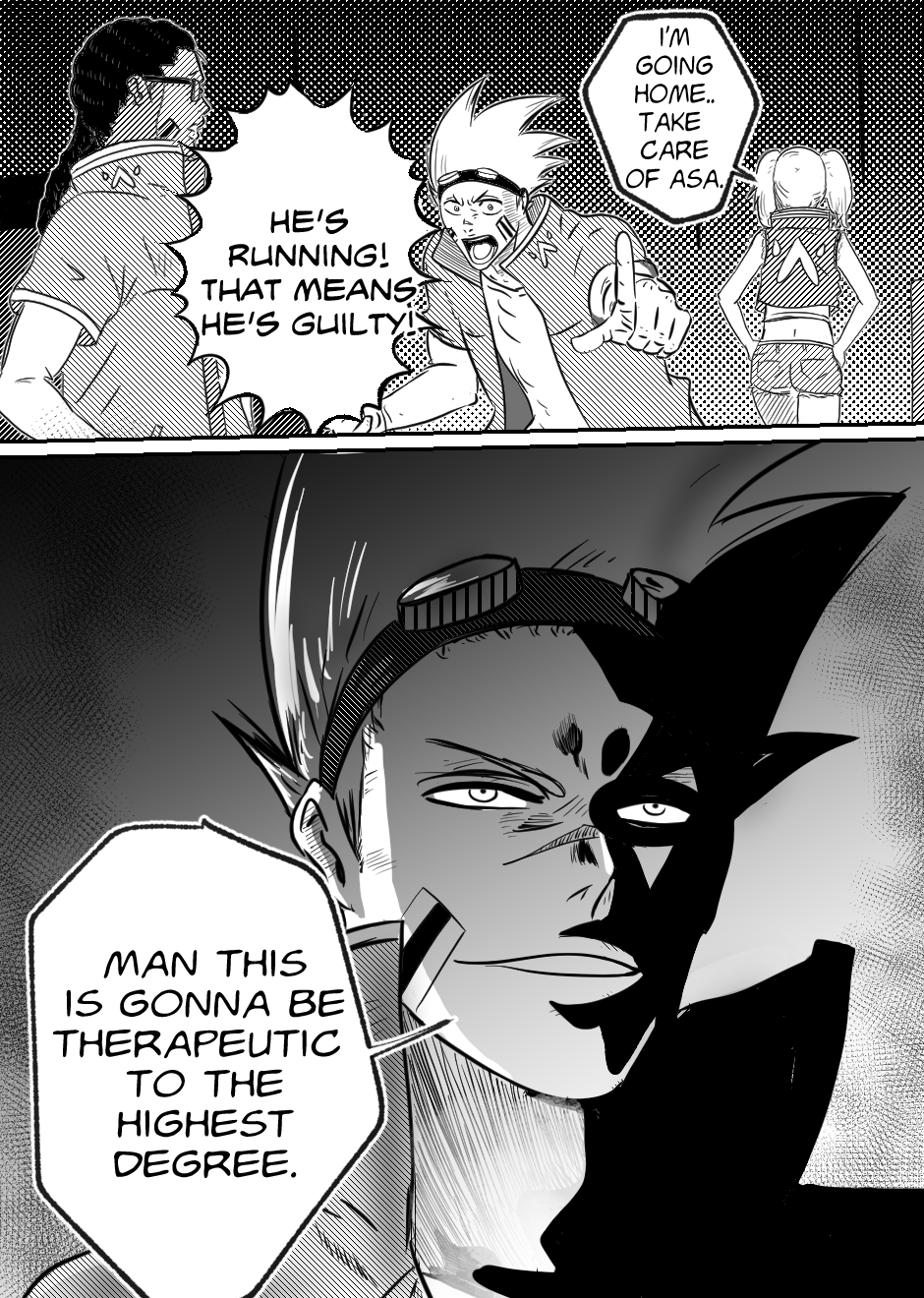 The amount of fun I had with this chapter cannot be overstated. This Asajima bloke is honestly a treat, but your expression work and comedic timing was simply on point this chapter. Beyond the general artistical improvements that obvious come with time, the paneling, expressions, everything was on point here. Just well done.