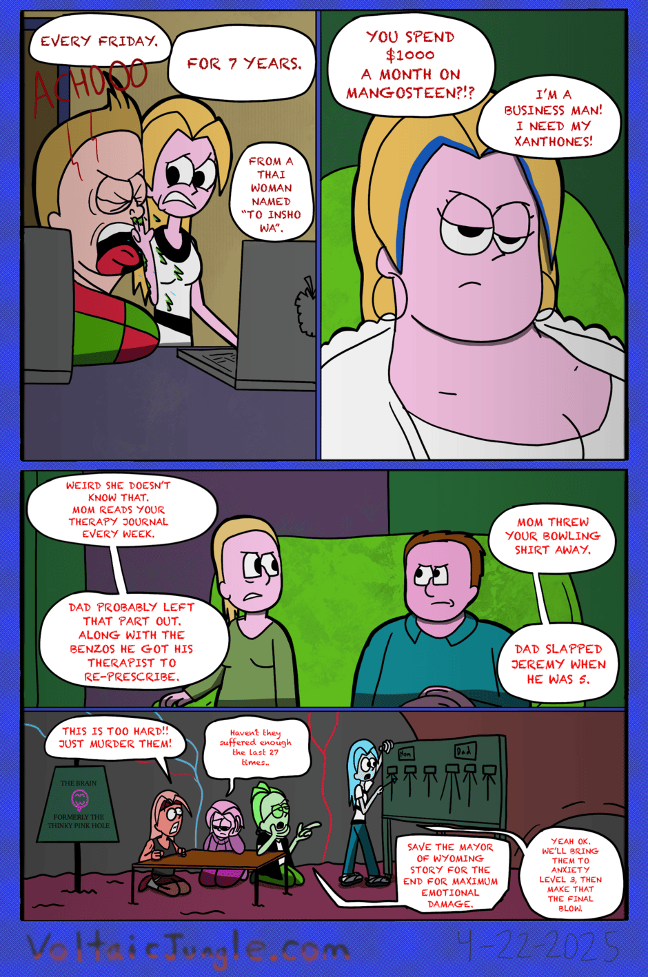 The hit early 2000’s cartoon continues churning out new adventures! Rebooted back to their iconic teenage selves, our six protagonists must cope with their renewed, seemingly endless existences. Watch these poor souls continue to entertain forever and ever and ever and ever and ever... Also available at www.voltaicjungle.com/free_falling