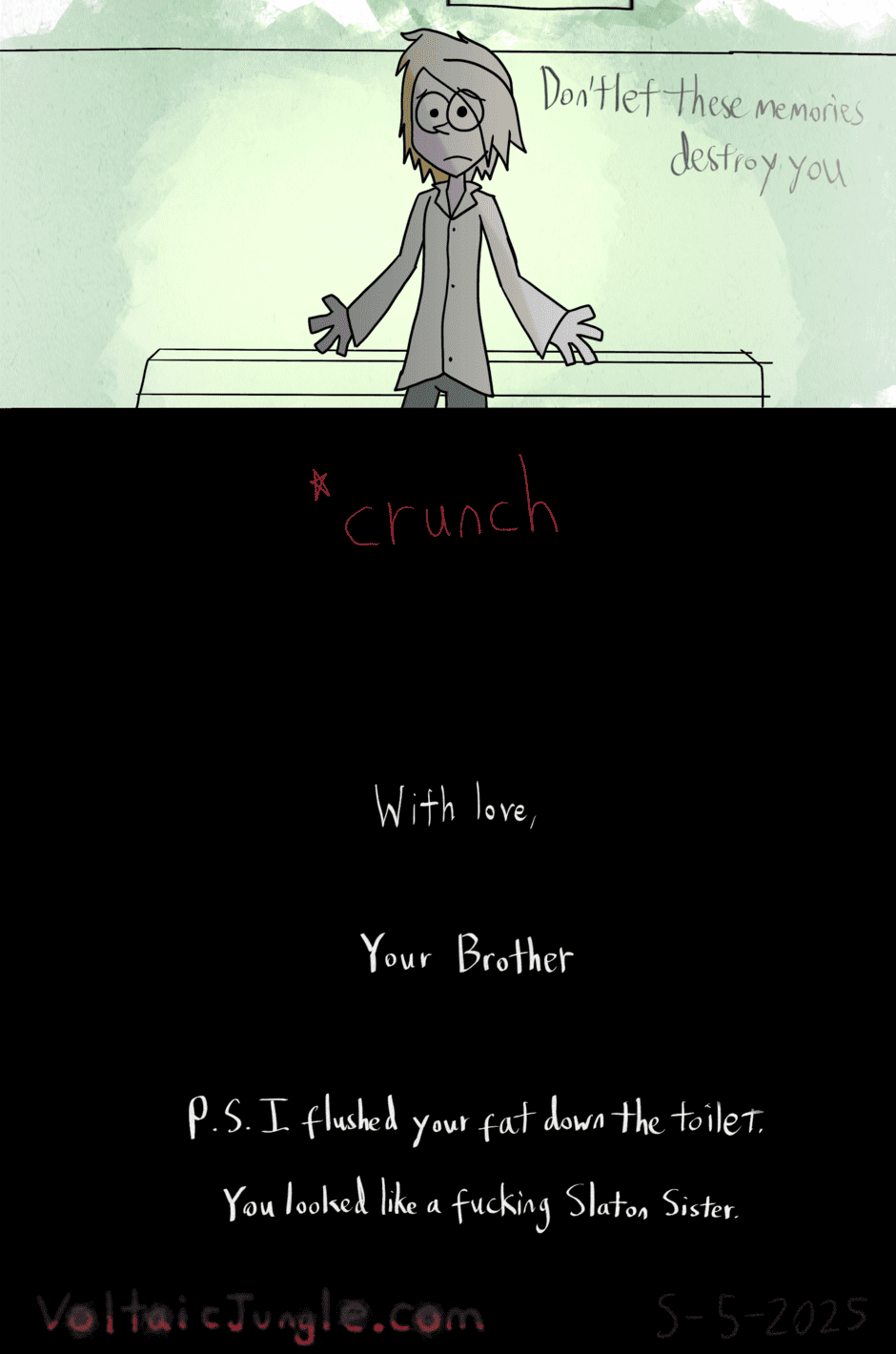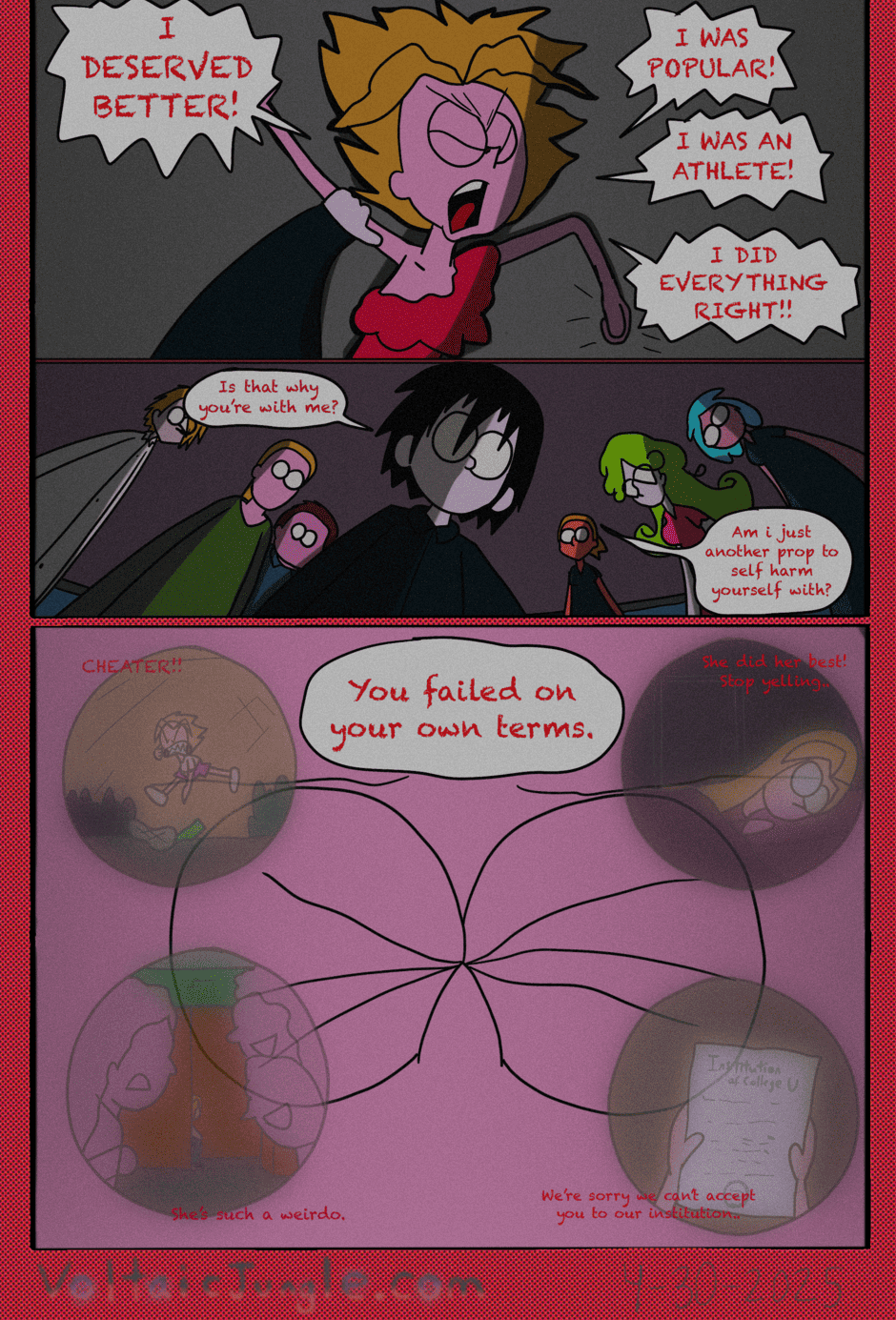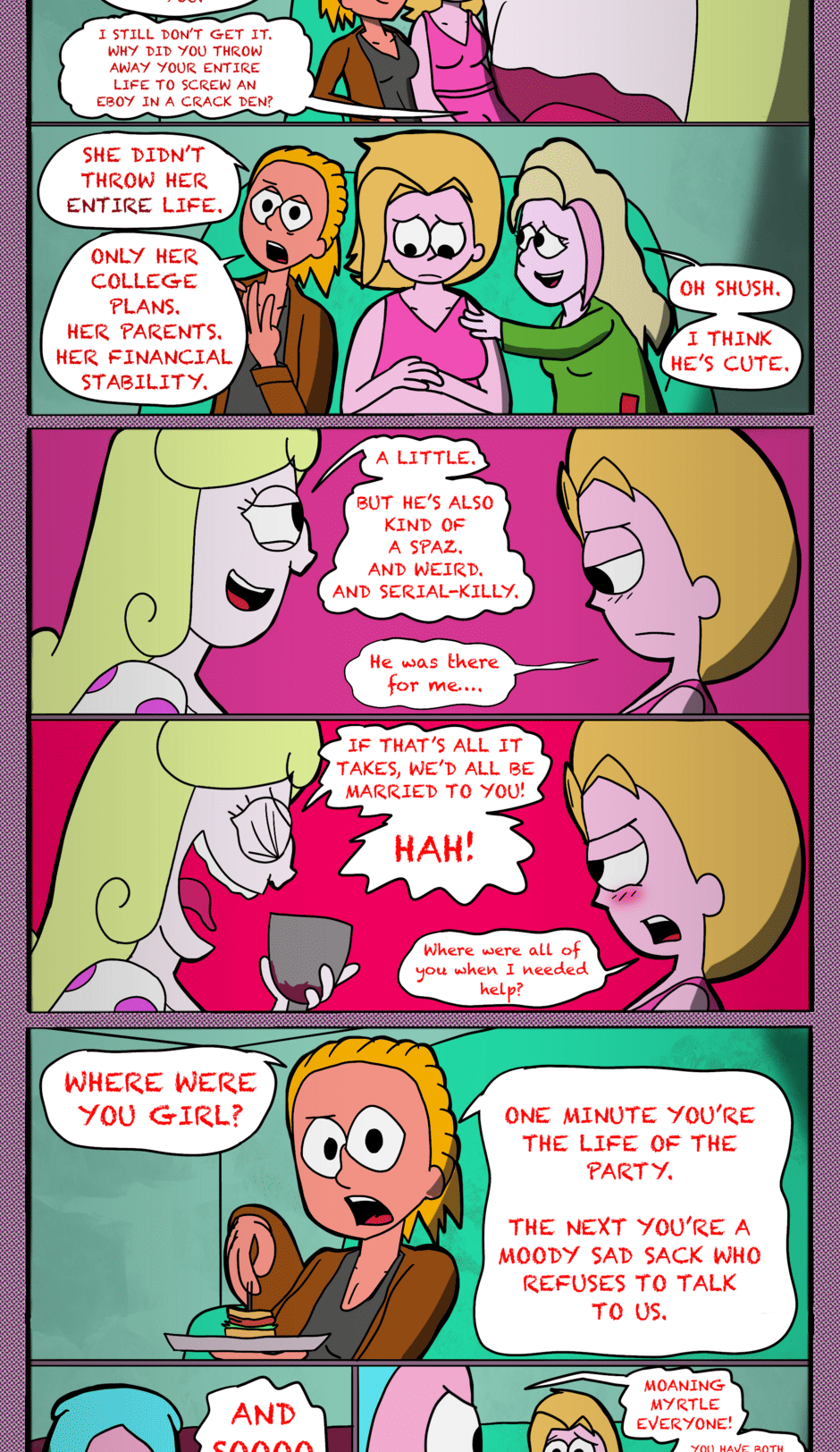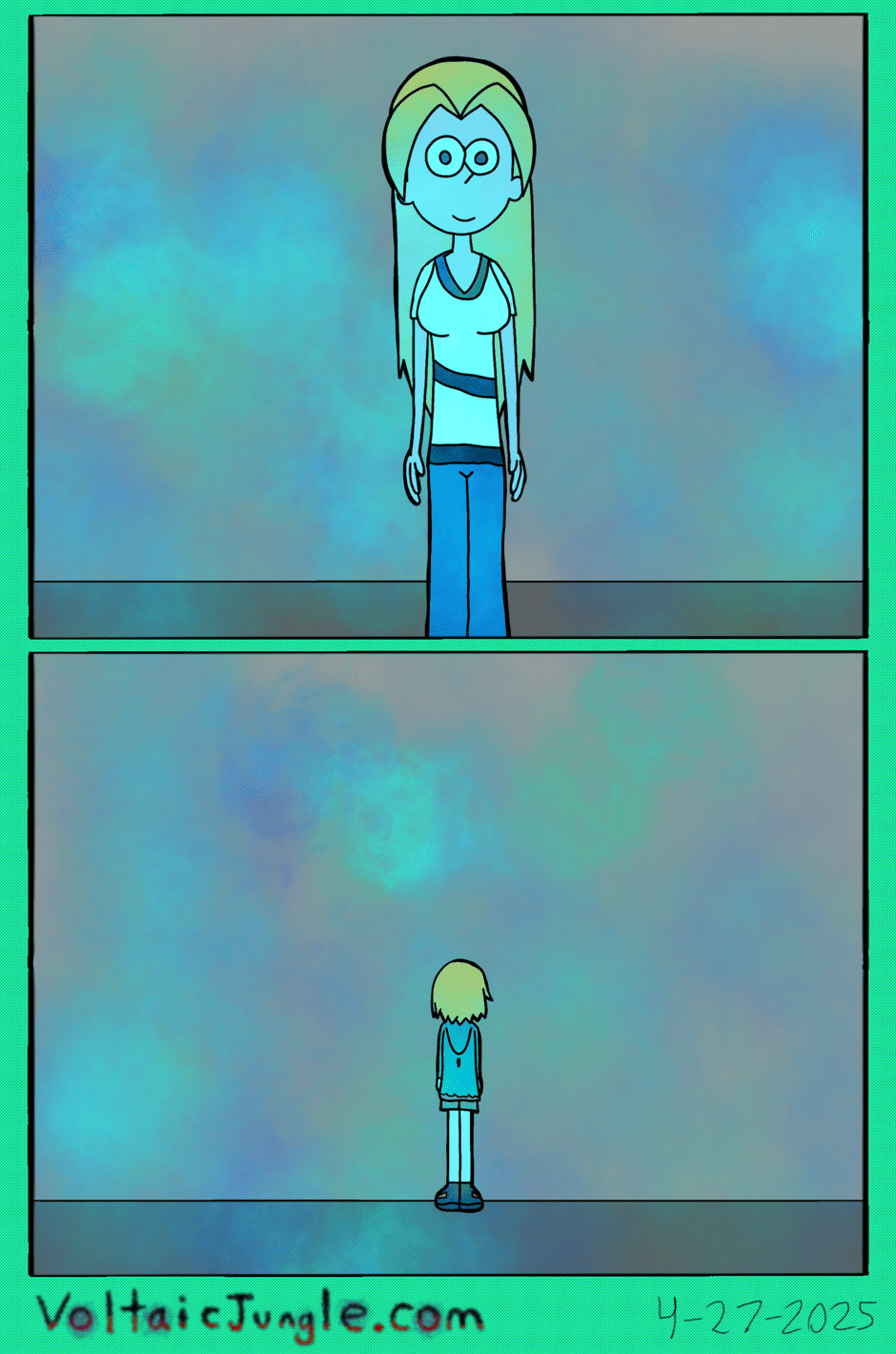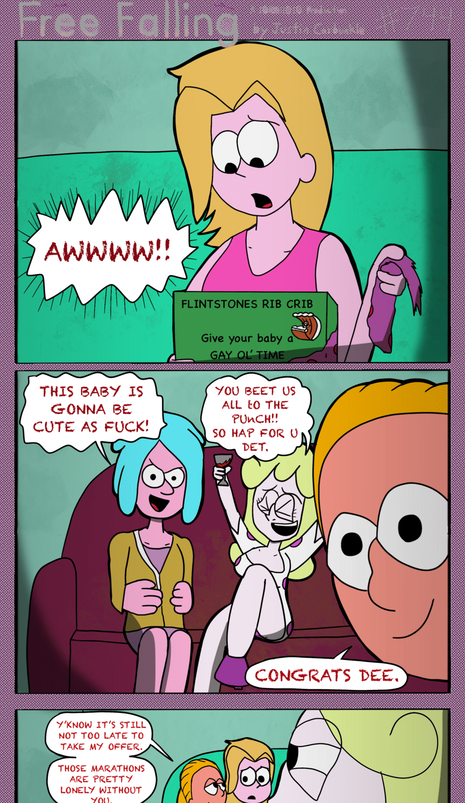 The hit early 2000’s cartoon continues churning out new adventures! Rebooted back to their iconic teenage selves, our six protagonists must cope with their renewed, seemingly endless existences. Watch these poor souls continue to entertain forever and ever and ever and ever and ever... Also available at www.voltaicjungle.com/free_falling