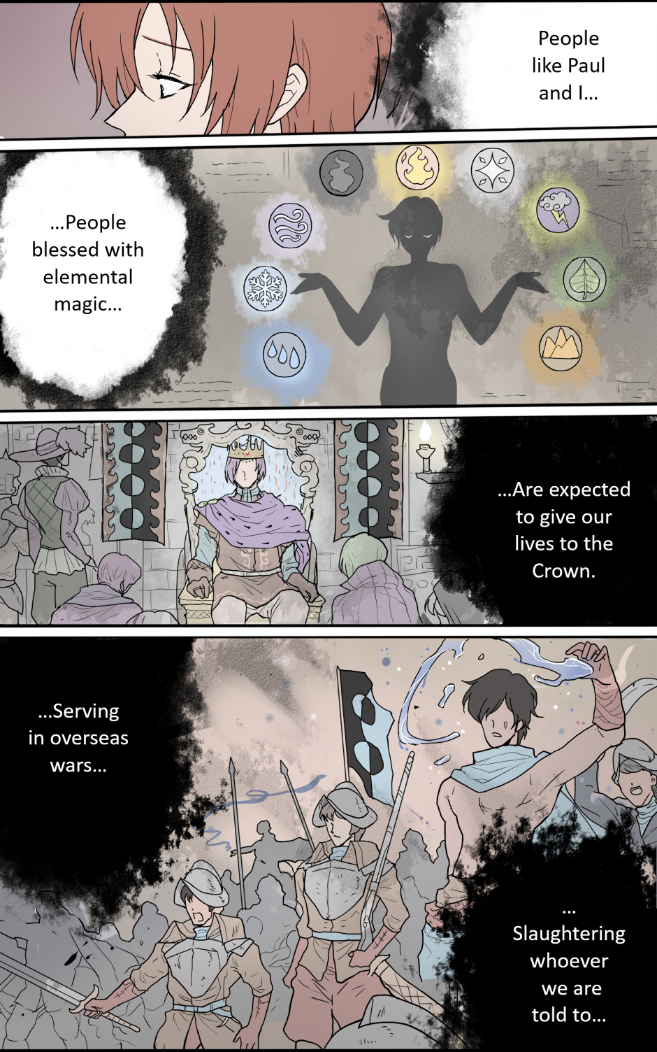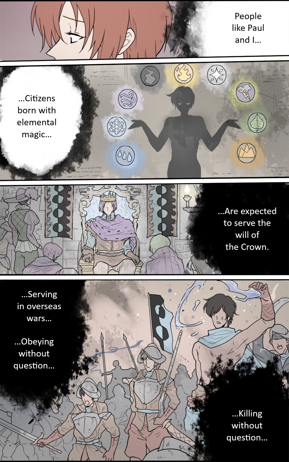 Thanks for reading! :) The Kingdom of Oe'ttona is an absolute monarchy with strong feudal and religious structures. While it's a very safe country to live in, there is an oppressive social hierarchy where one's life choices are very limited by one's class.