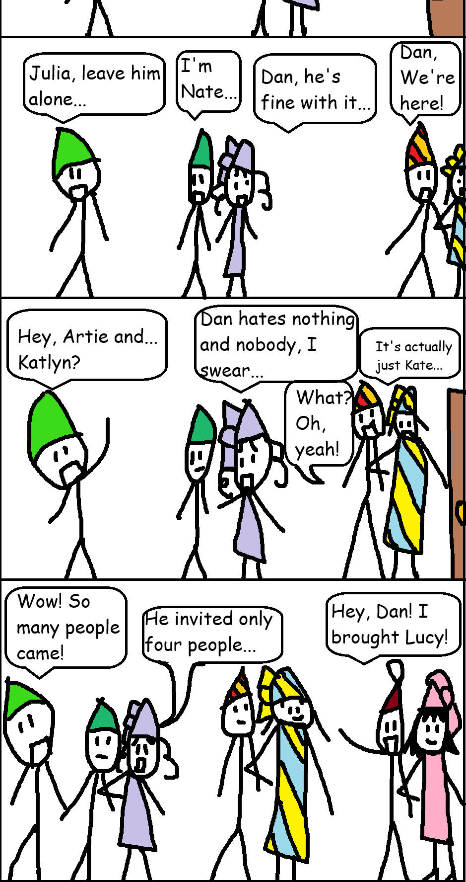 What if you invited all three of your friends and your sister, but two of them came with their dates? I'd find that awkward, especially if I didn't have a date of my own... And now Julia seems to have claimed Nate??? Not cool. I think Dan needs a date too.