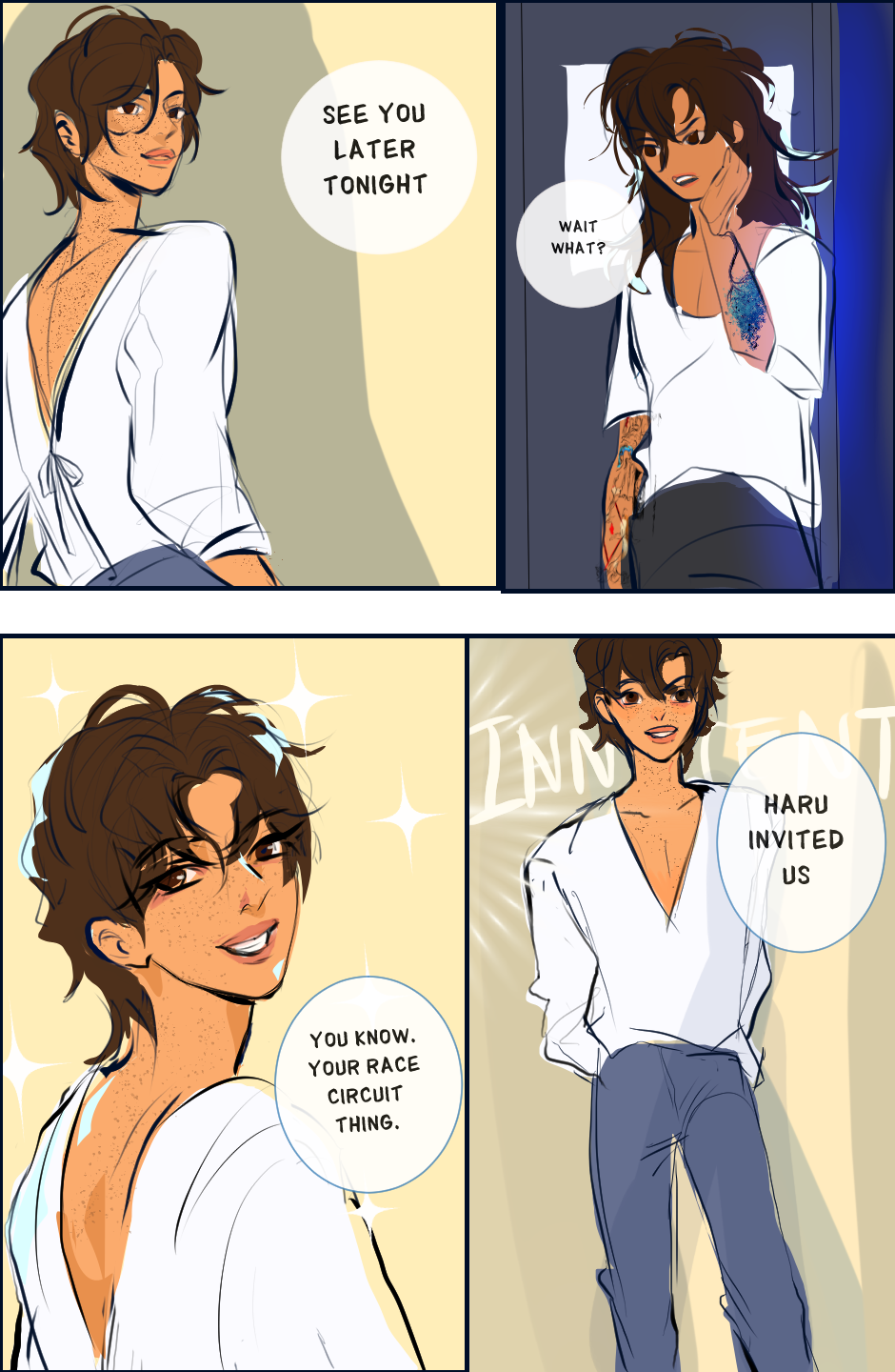 First drag race, first ancient cave exploration, first time in a love triangle. It all becomes an annoying cycle as Umi starts seeing invisible strings and finds themselves stuck in a world where the gods seem to be raining down gifts to everyone except them.