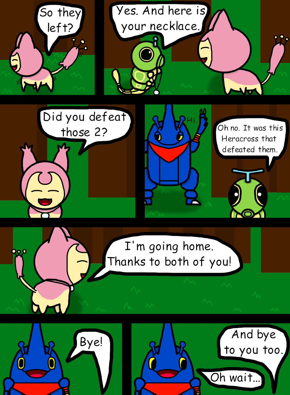 PT-BR: Aqui a dona do colar. Ela pediu ajuda a Caterpie para recuperar o colar.