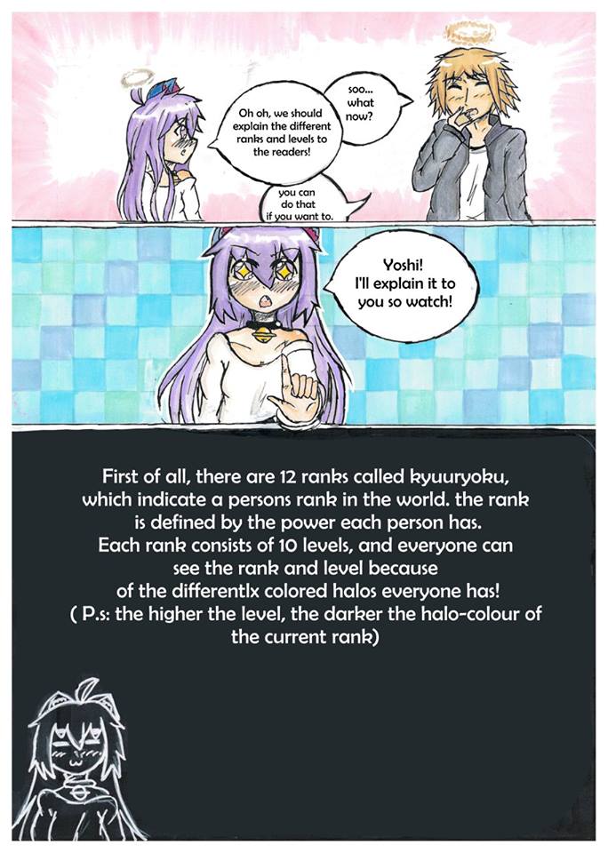 Our two heroes, Lone and Neko, live in a world in which everyone and everything is divided by their Kyuuryoku, a level indicating their strength and influence in the World of 'yokari' which is indicated by a halo floating on top of their heads.