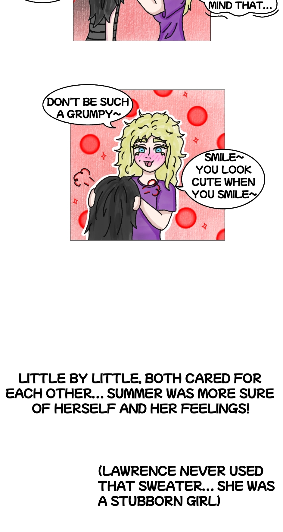 Lawrence was a girl who pretended to be fine and happy, she was always cheerful, no one asked her how she was... Until one day a new student named "Summer" appears and thats when little by little the life of Lawrence was warming up.... Fire like a blaze, Summer left a mark on Lawrence.