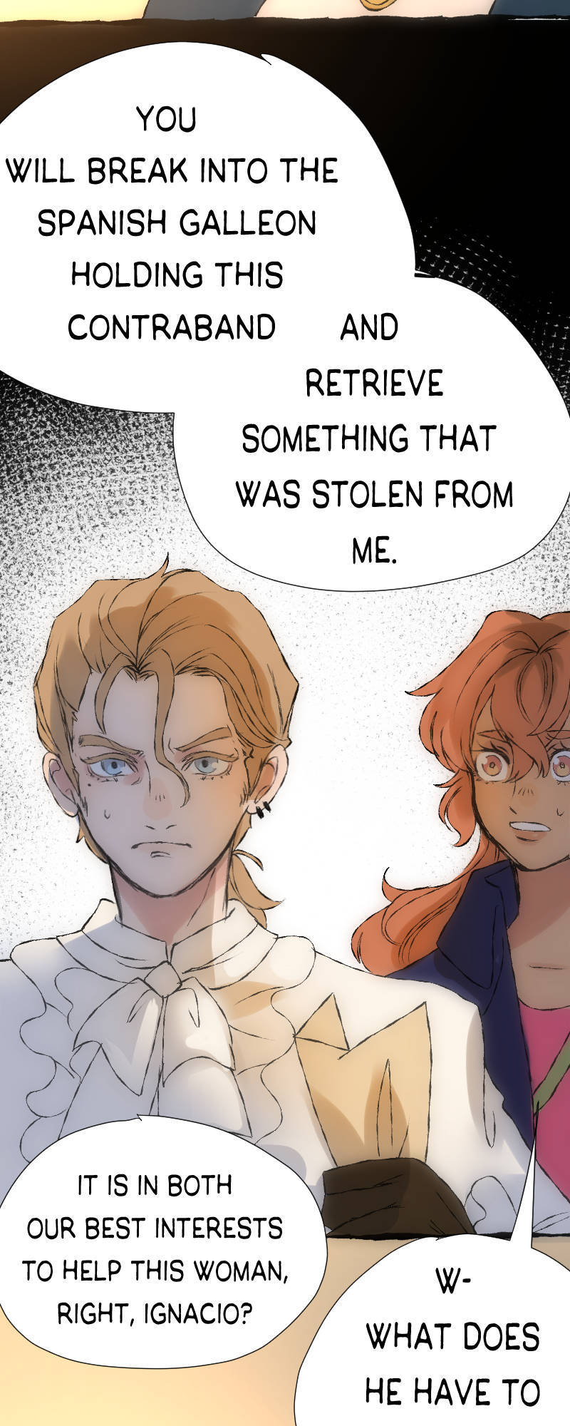 Magdalena is a history student living in the small island nation of Morrocoy, known for its historic role during the golden age of piracy. After she flees a tense family reunion, she finds herself whisked away into the past! In order to return home, she must join forces with the most famed historical figure of the island—Ignacio Villanueva. Updates twice a month, for now.