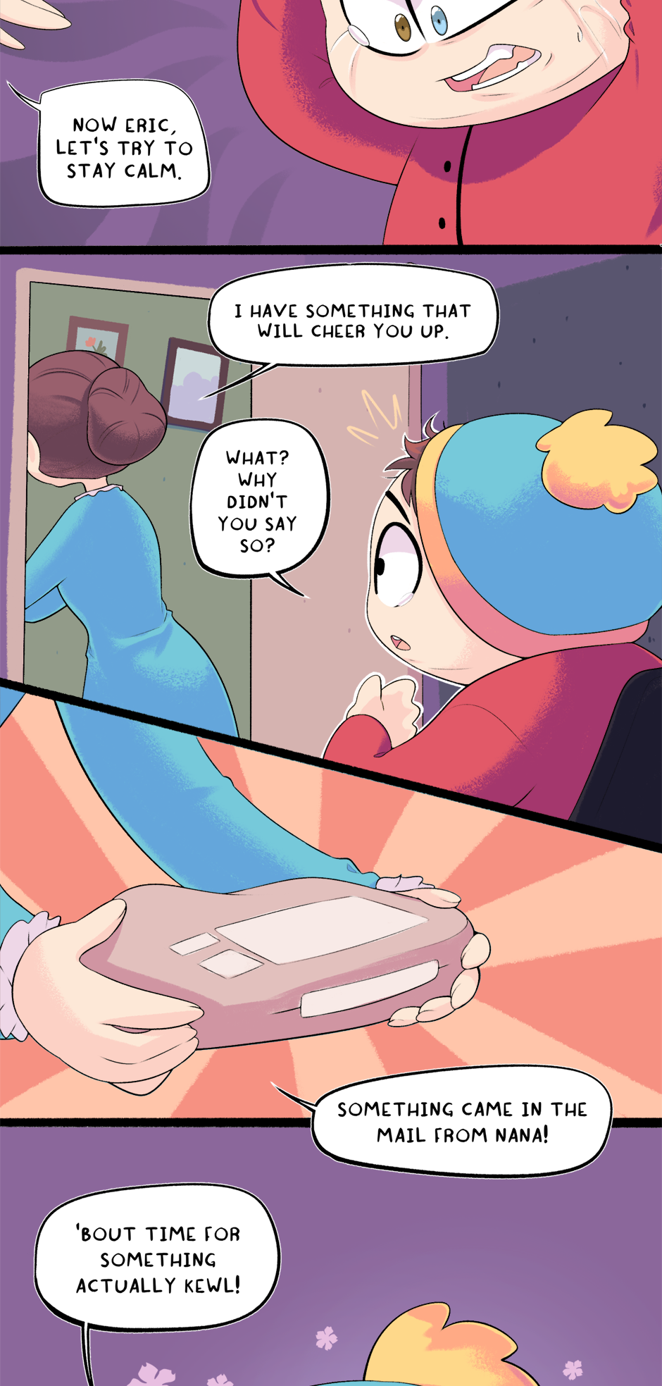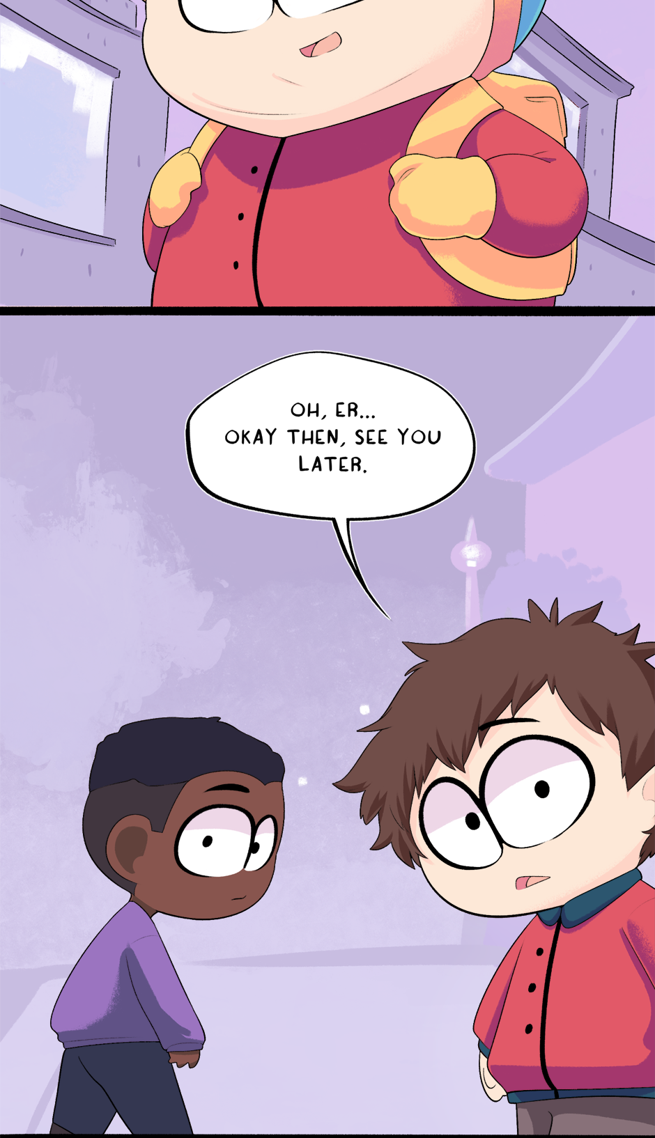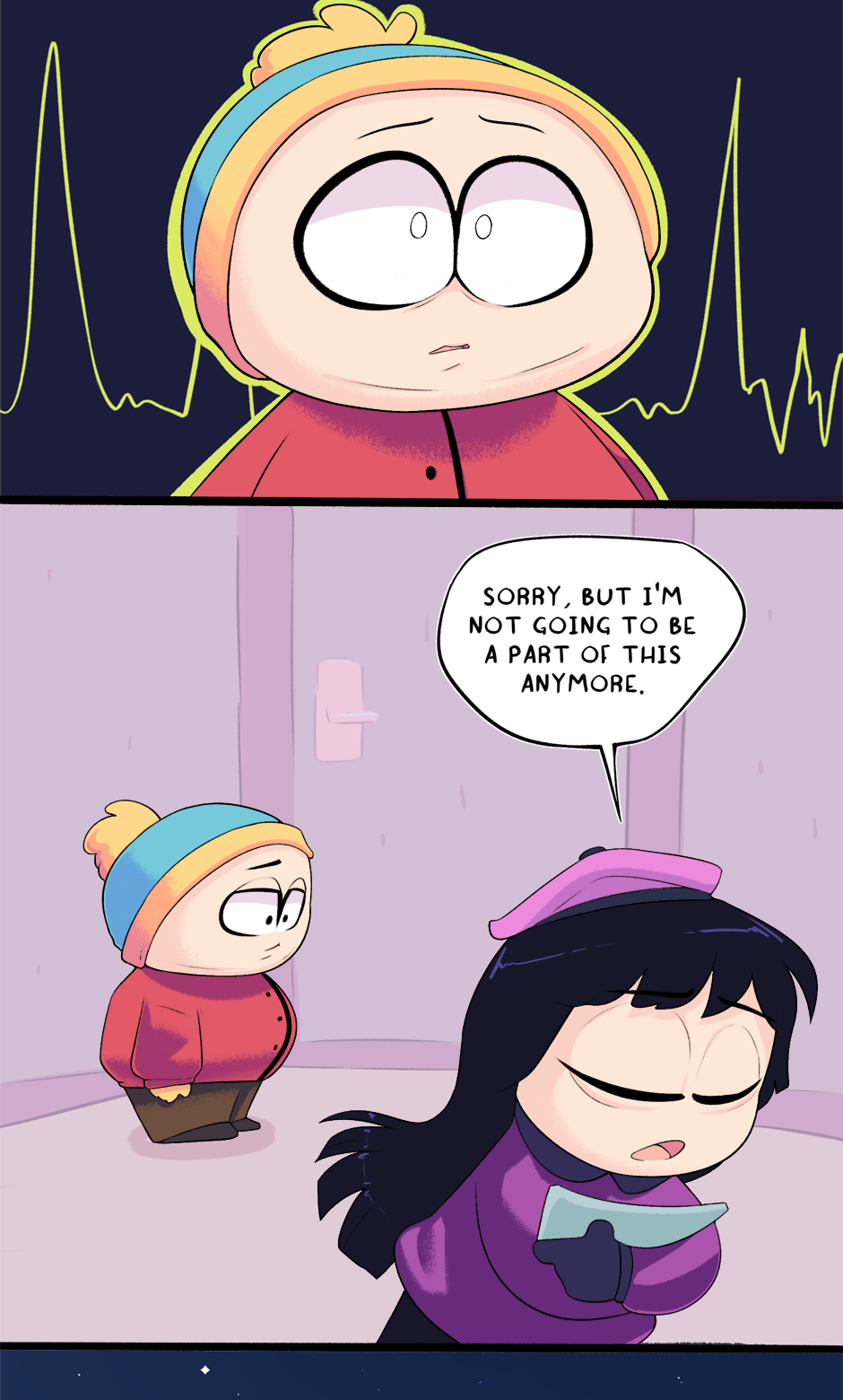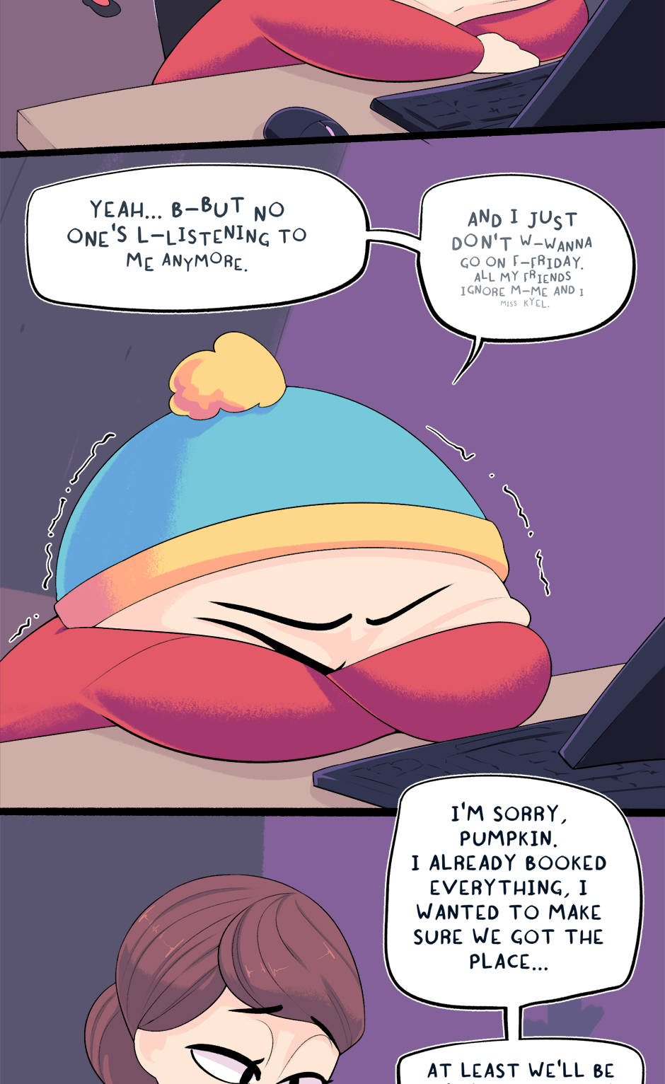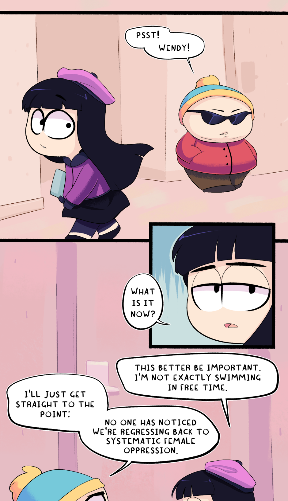 This chapter is part 2 of how Cartman got kicked out of school, with the next chapter being the third and final flashback. The next chapter is entirely planned and half-drawn already. It was originally supposed to just end this chapter but it ended up too long.