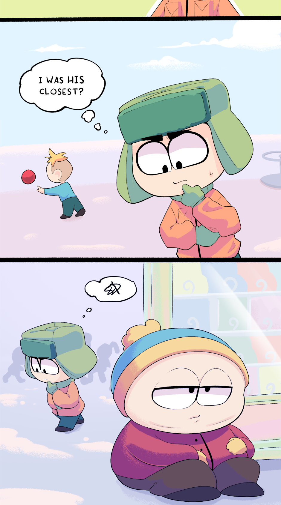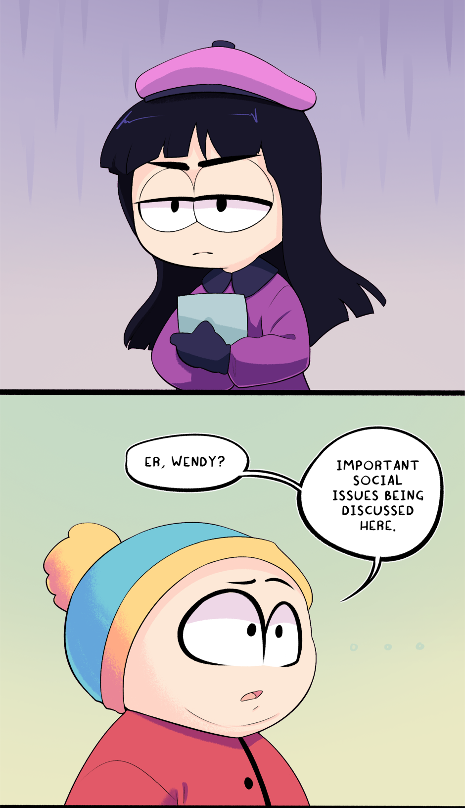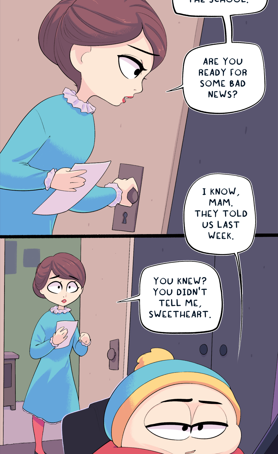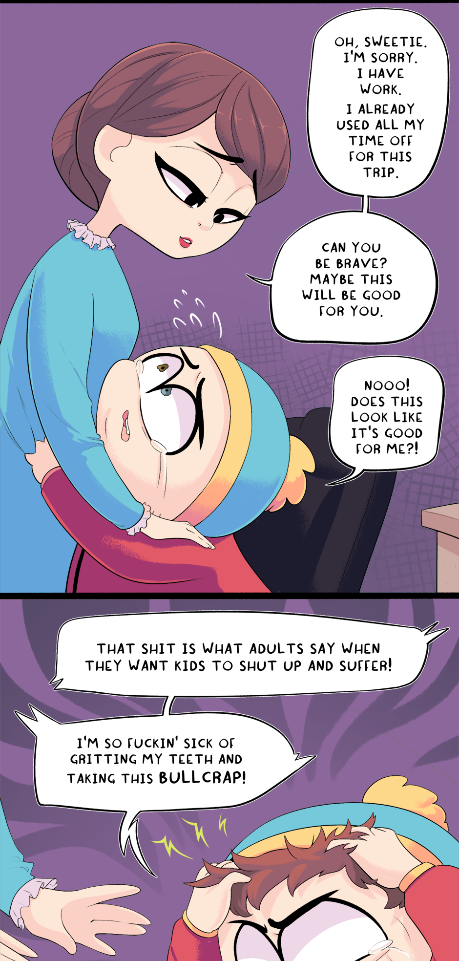 This chapter is part 2 of how Cartman got kicked out of school, with the next chapter being the third and final flashback. The next chapter is entirely planned and half-drawn already. It was originally supposed to just end this chapter but it ended up too long.